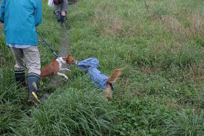 7月7日 穴掘り中のガッツァ君。土だらけ(汗) |