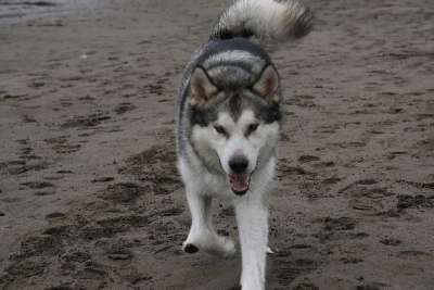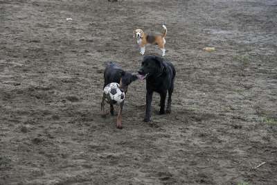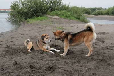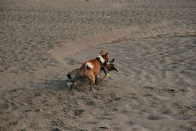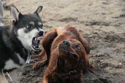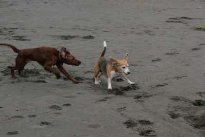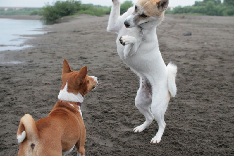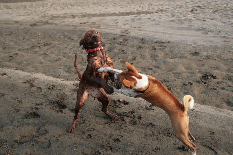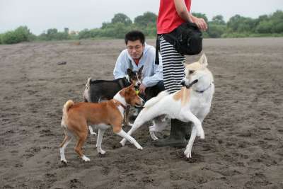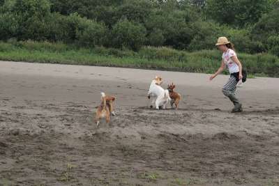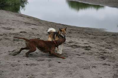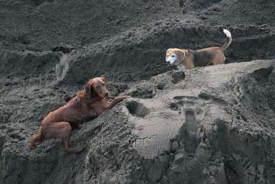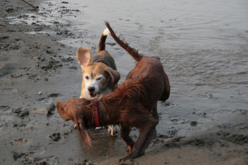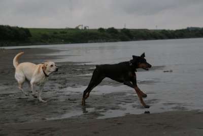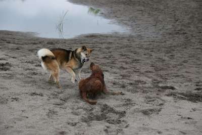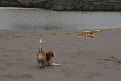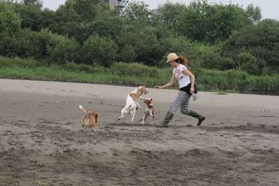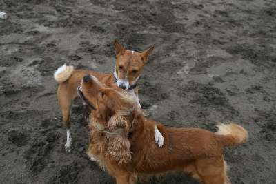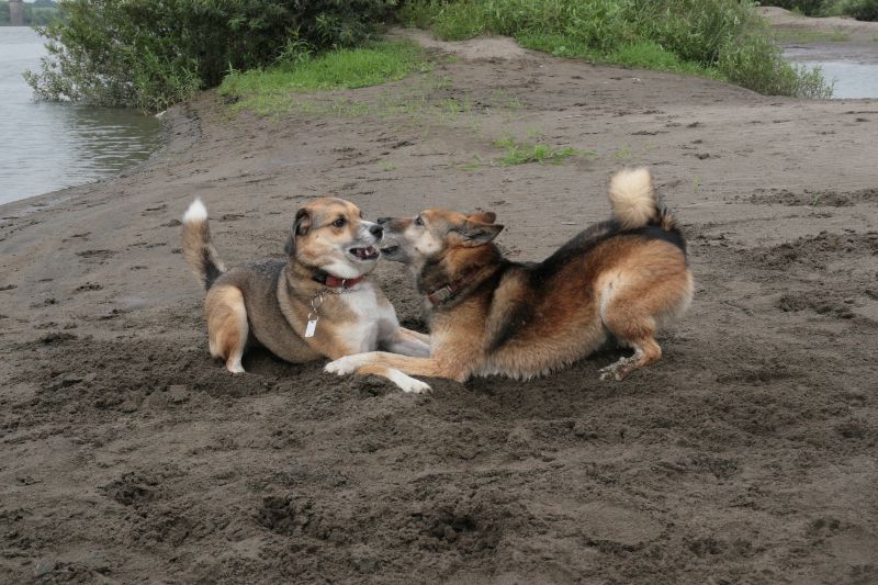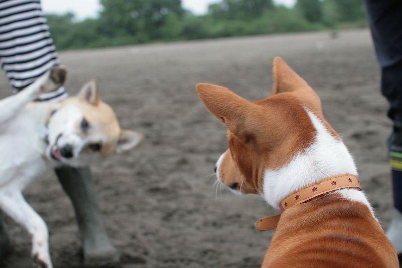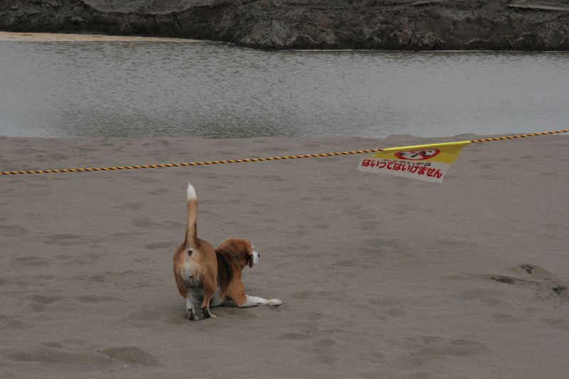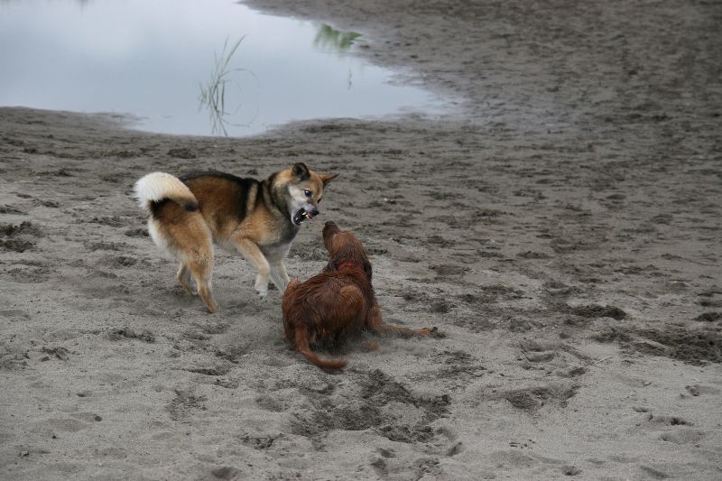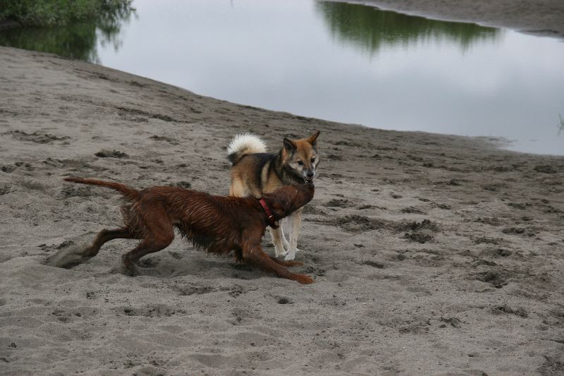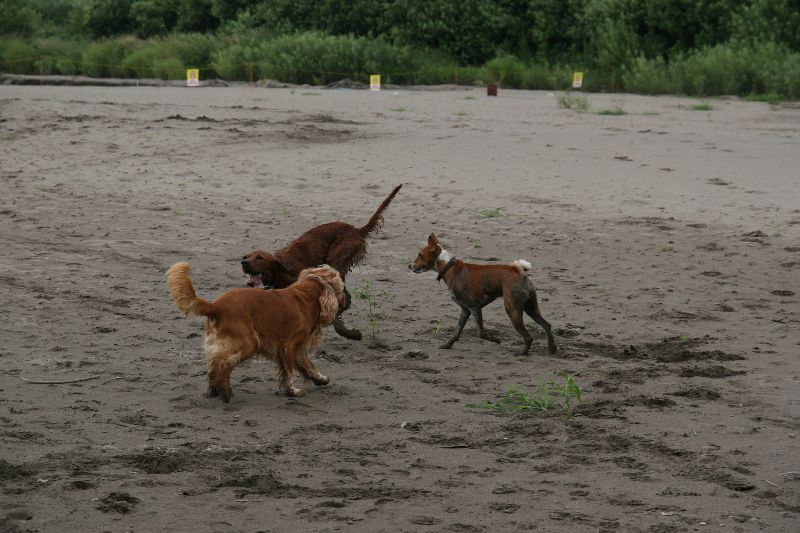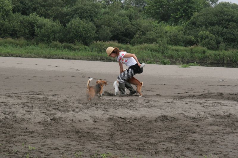 7月8日 リリーちゃんとのじゃれあいでカラジ君は砂だらけ |