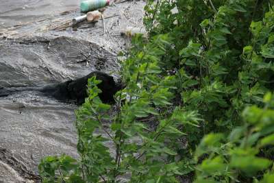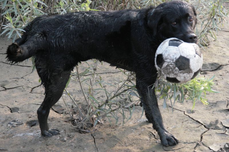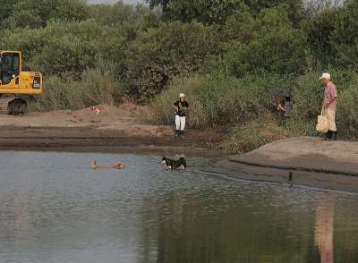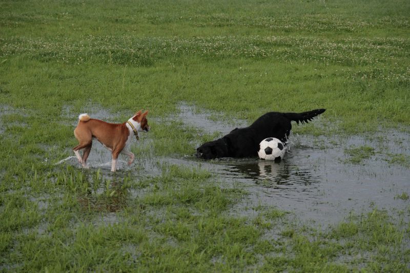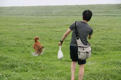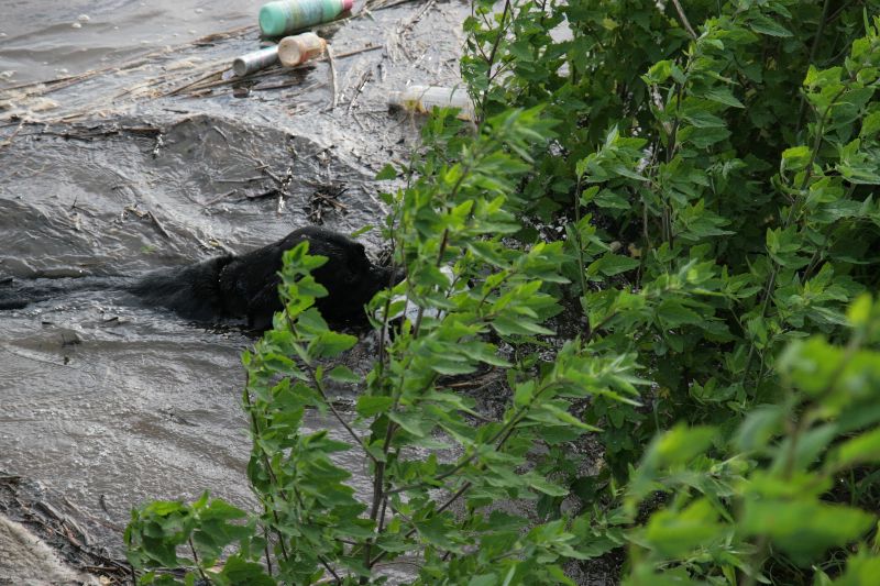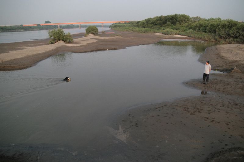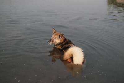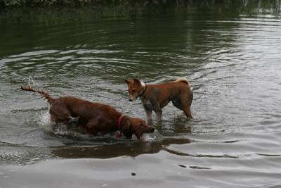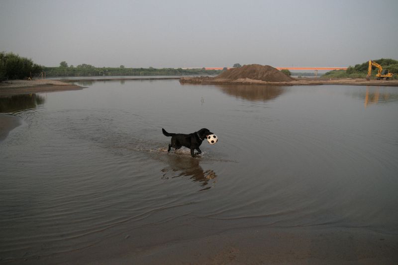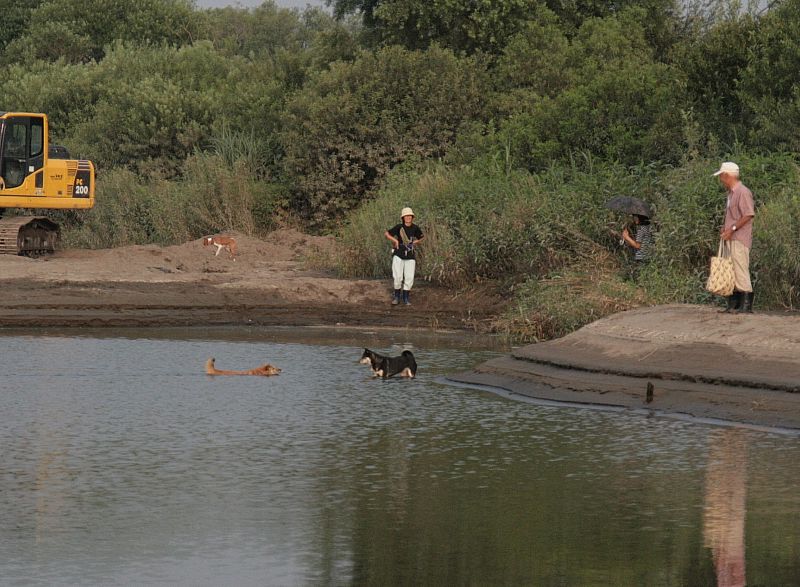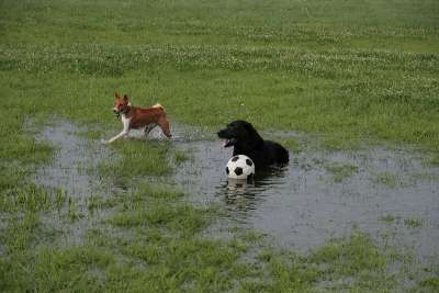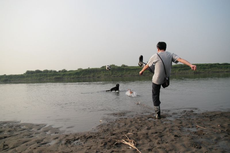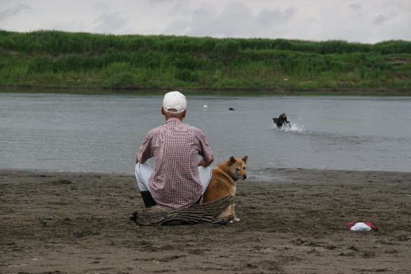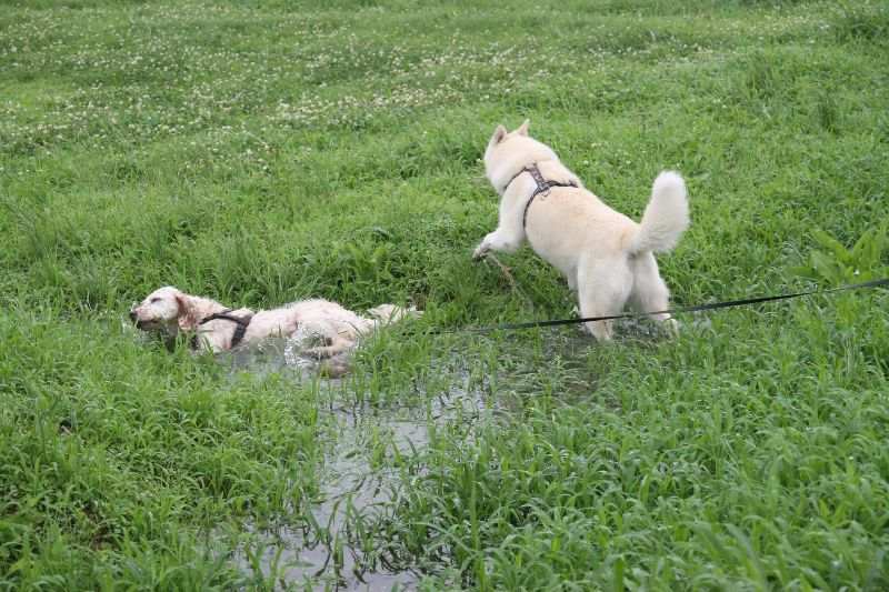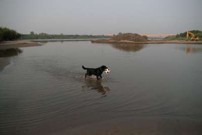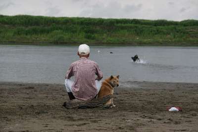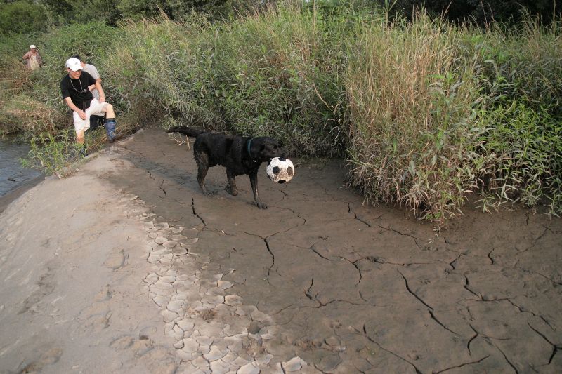 7月15日 濁流を物ともせず、川に飛び込む命知らずのルース君(汗) |