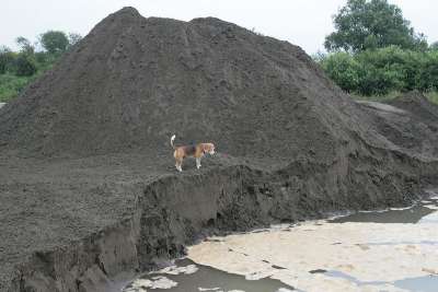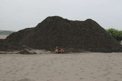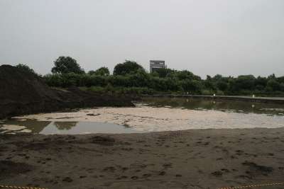 7月28日 奥にあるのが入口に積まれた砂山 |