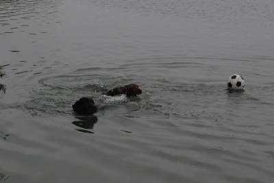7月7日 ボールに向かって泳ぐリリーさんとルース君 |