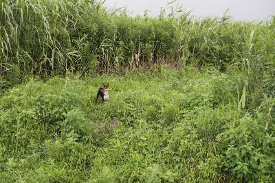7月7日 久々にマロンちゃん登場。川岸は草ぼうぼうに... |