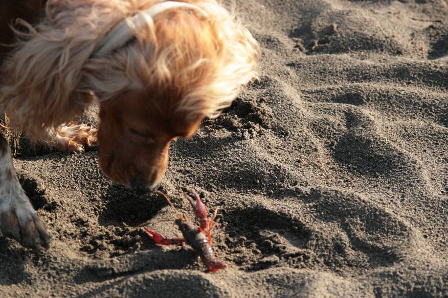 宿命のライバル?ザリガニさんと戦うマリオ君。 |