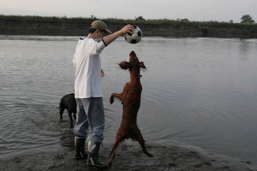 ボクちゃん大好き!スリスリするカラジ君。 |