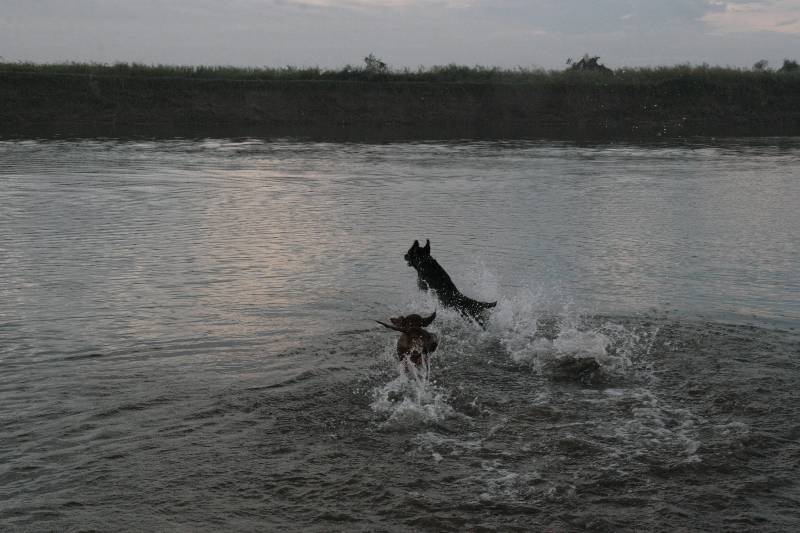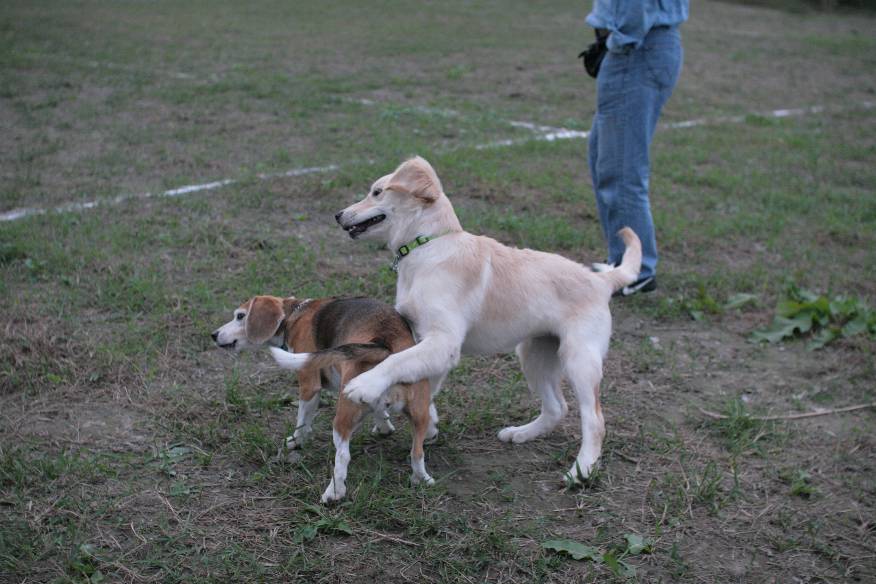 追いかけっこをするミズキ兄貴とリカちゃん。 |
