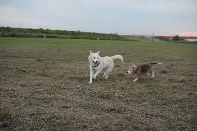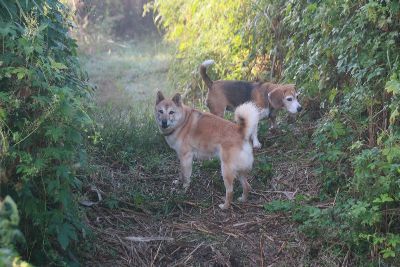 10月18日 奥の細道にて。ジョンくんときゃら。 |
