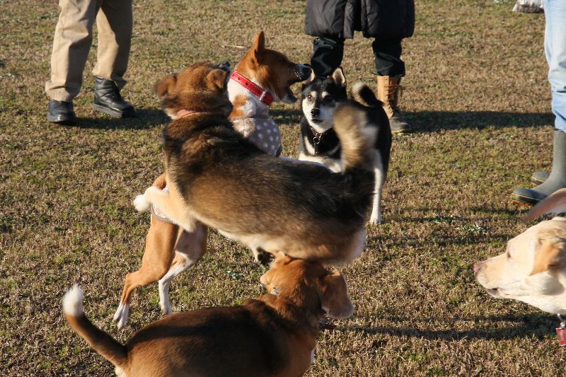 皆に匂いをかぎまくられるハナちゃんの図。 |