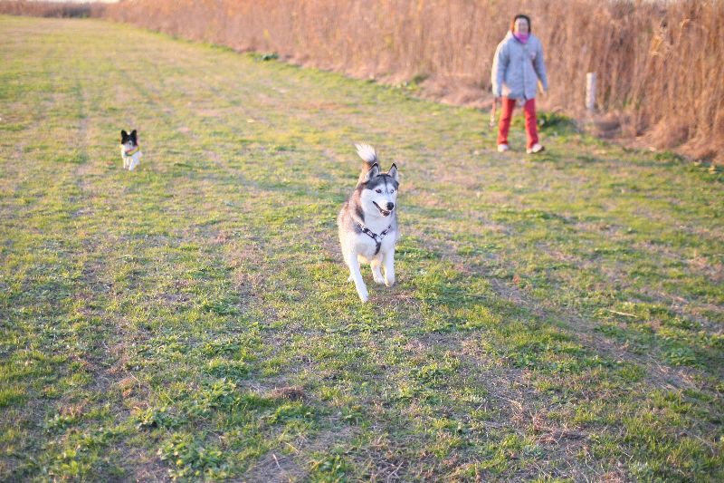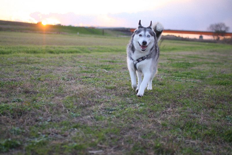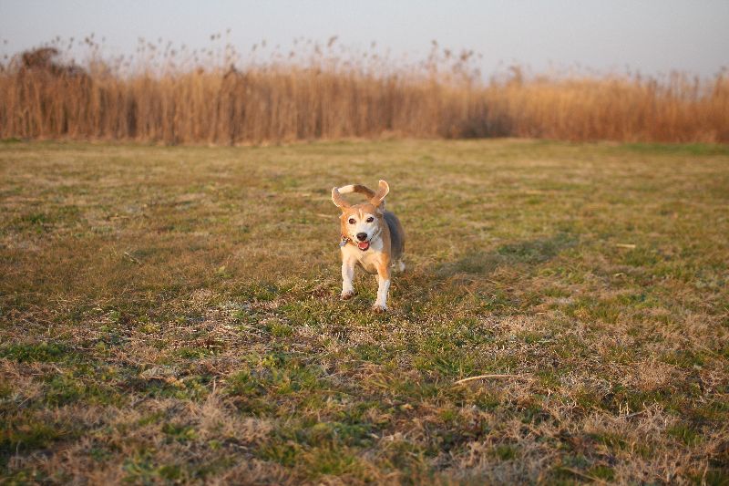 朝日の中を激走する大吉君。 |
