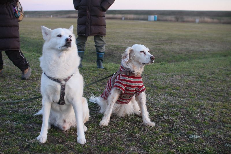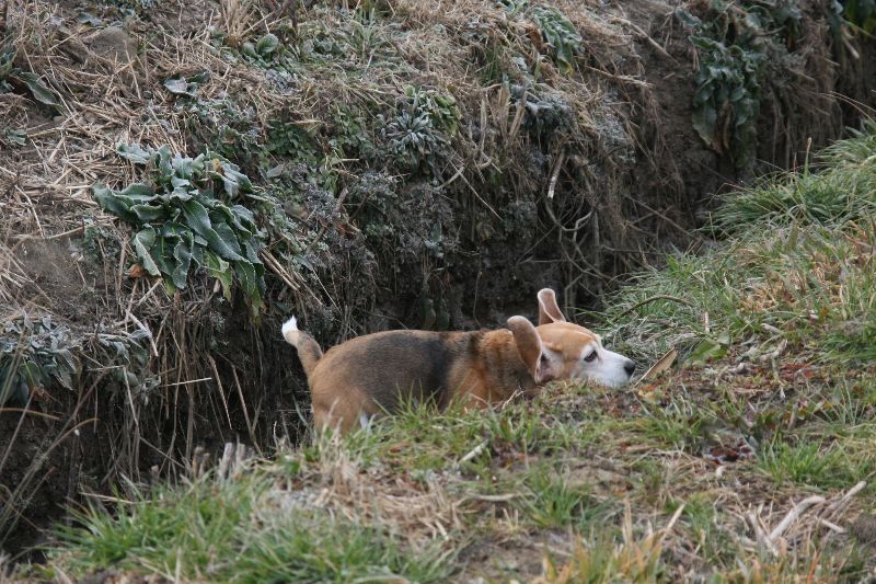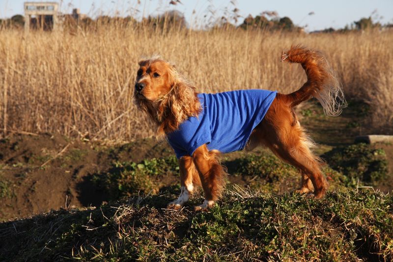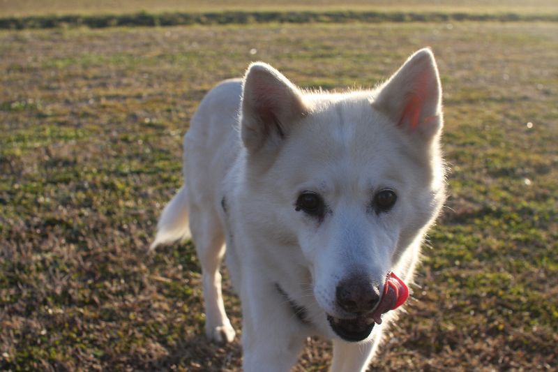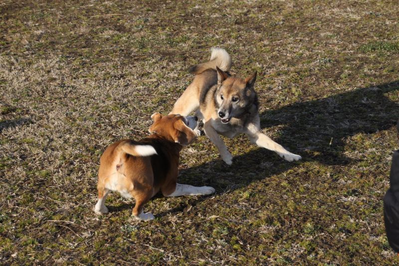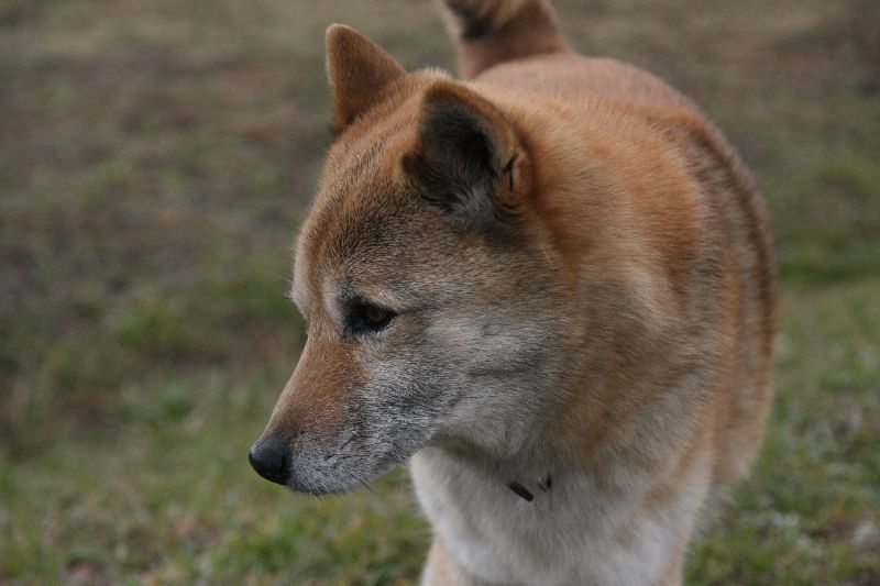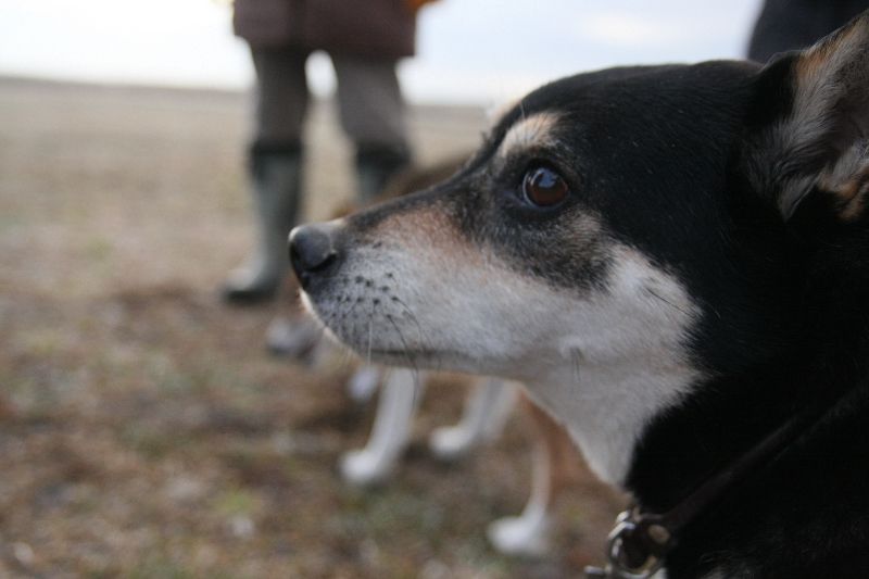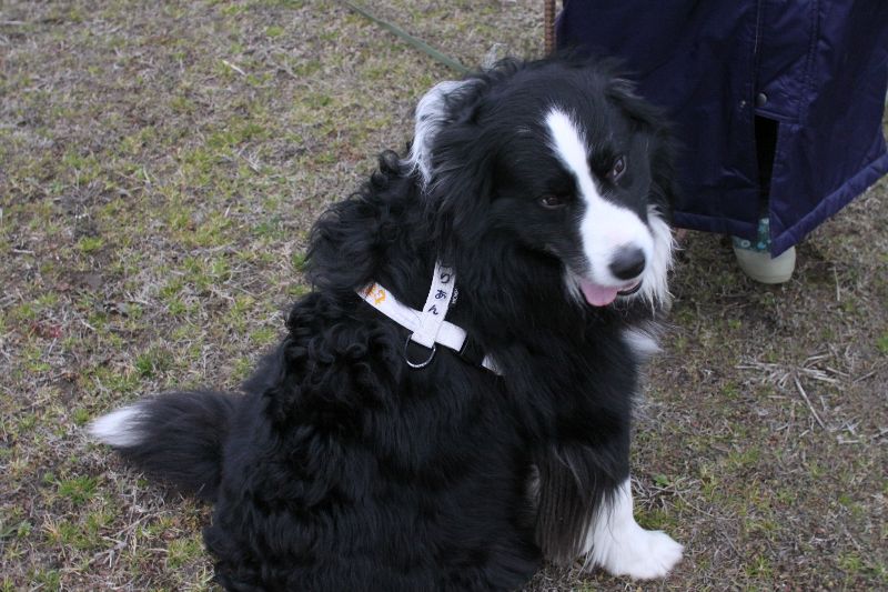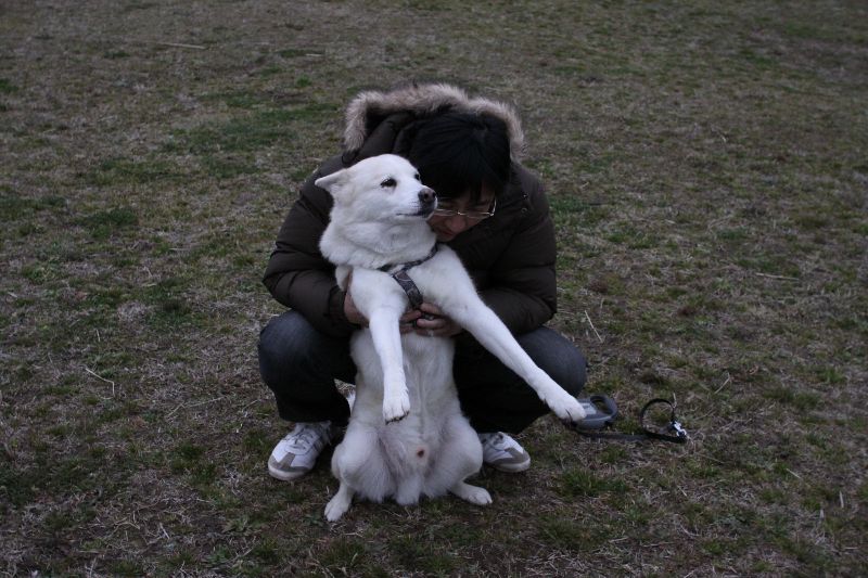 寒さのあまり自分の尻尾の上に座る大吉君の図。 |
