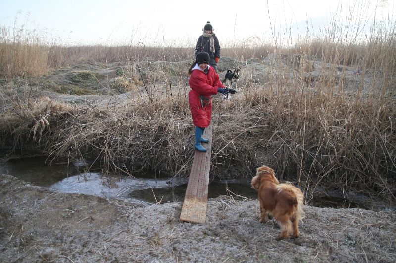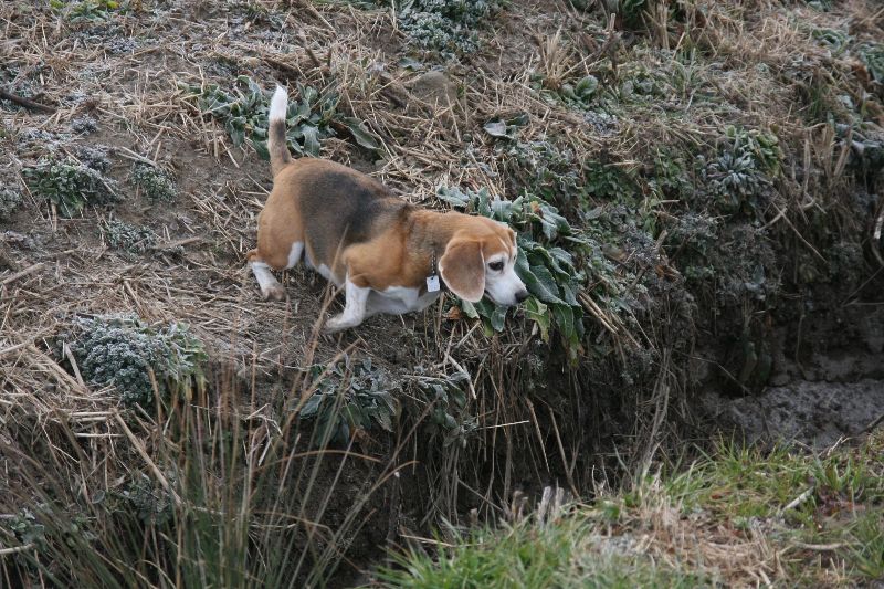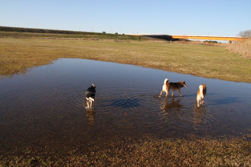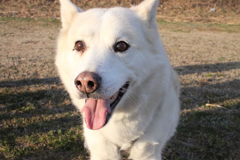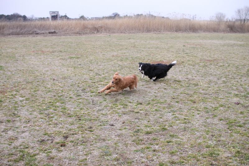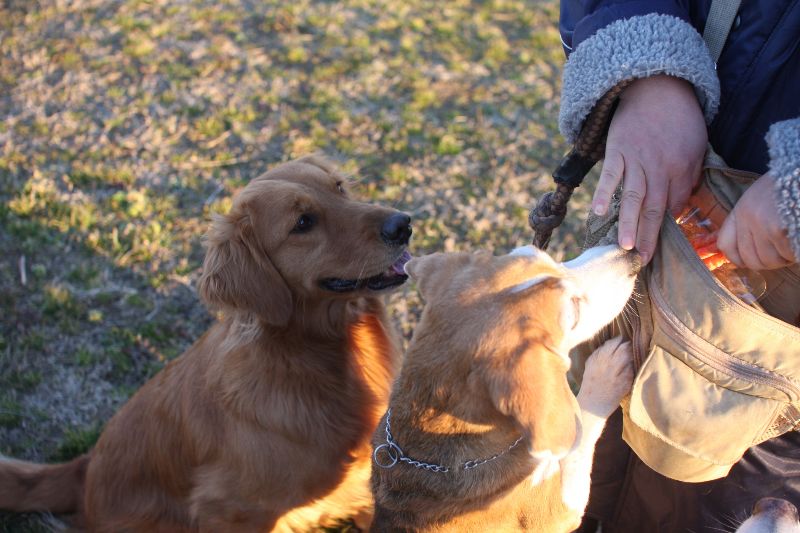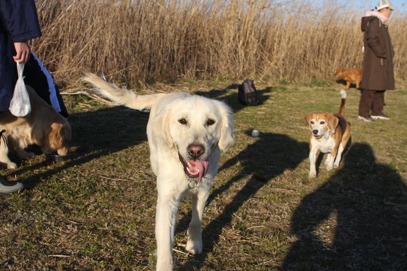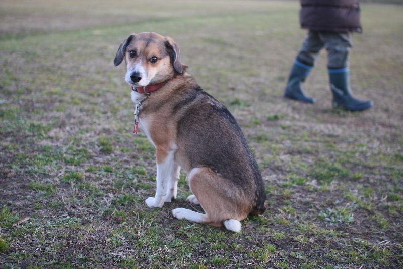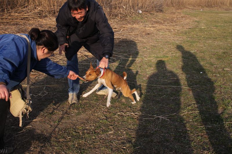 寒さのあまり自分の尻尾の上に座る大吉君の図。 |