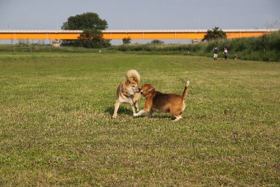 6月6日 まずはミズキ兄貴の洗礼を受けるカイ君。 |