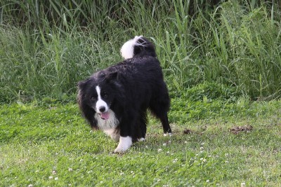 6月6日 四つ葉ちゃんを観察する怖いもの知らずのカイ君。 |