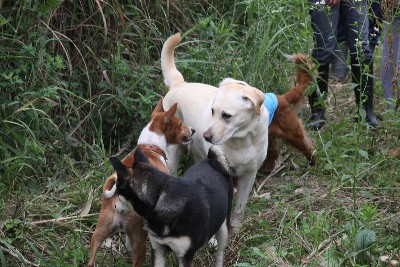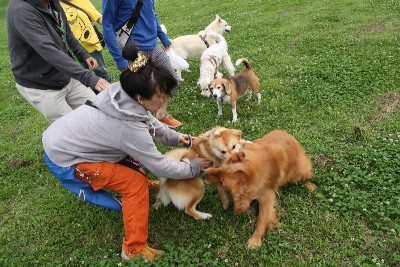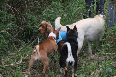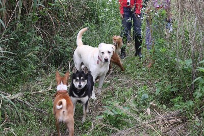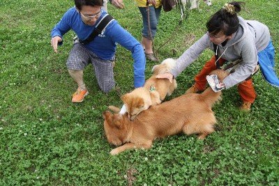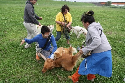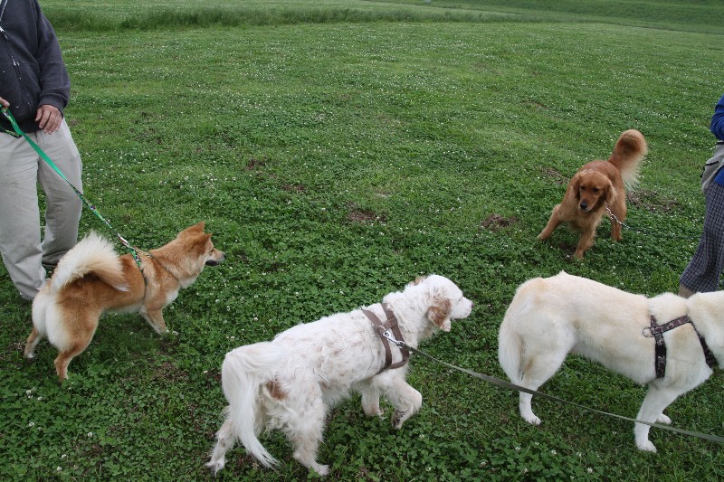 6月14日 お散歩コースでリリーさんと遭遇する皆さん。 |