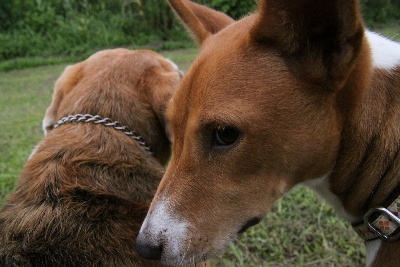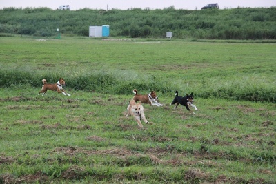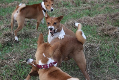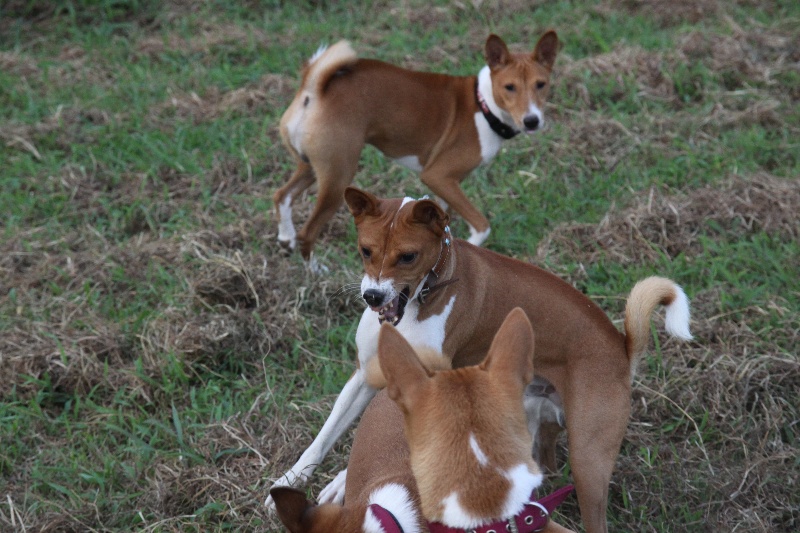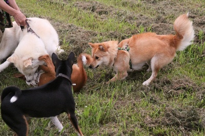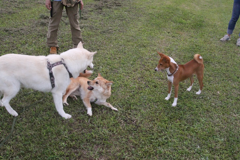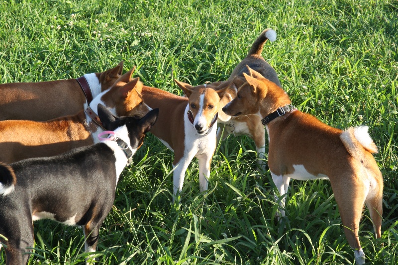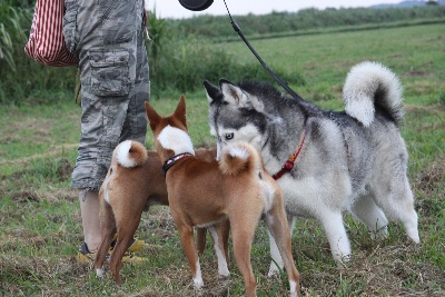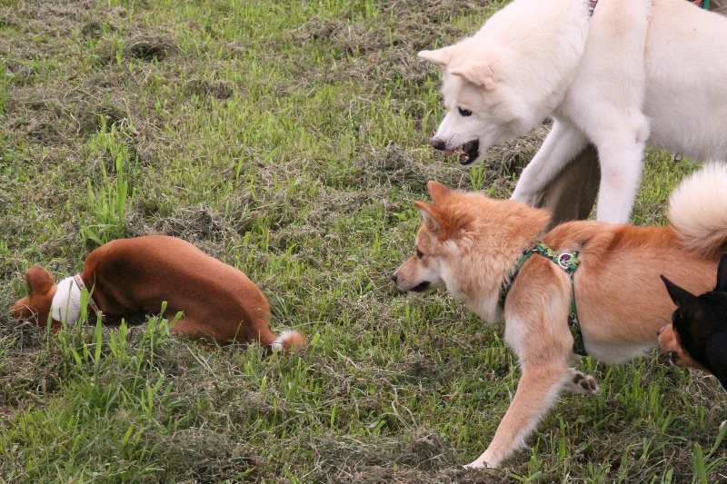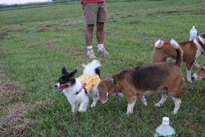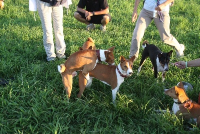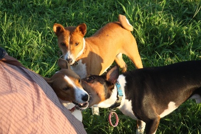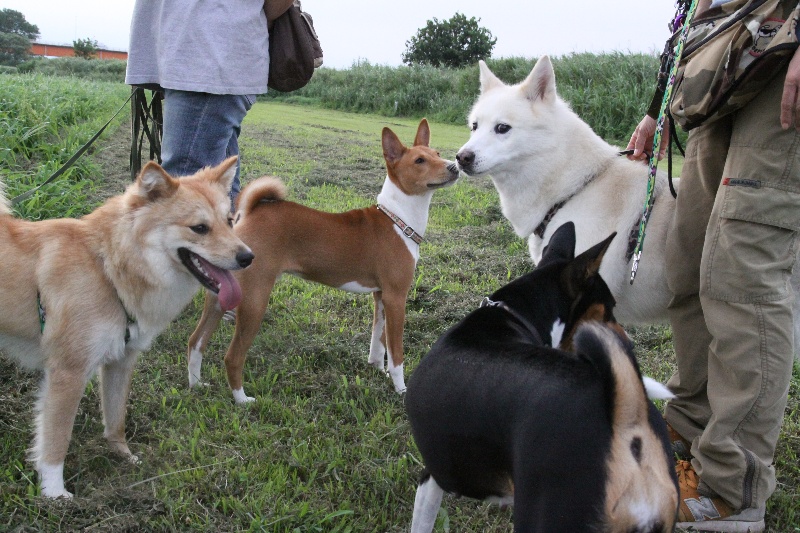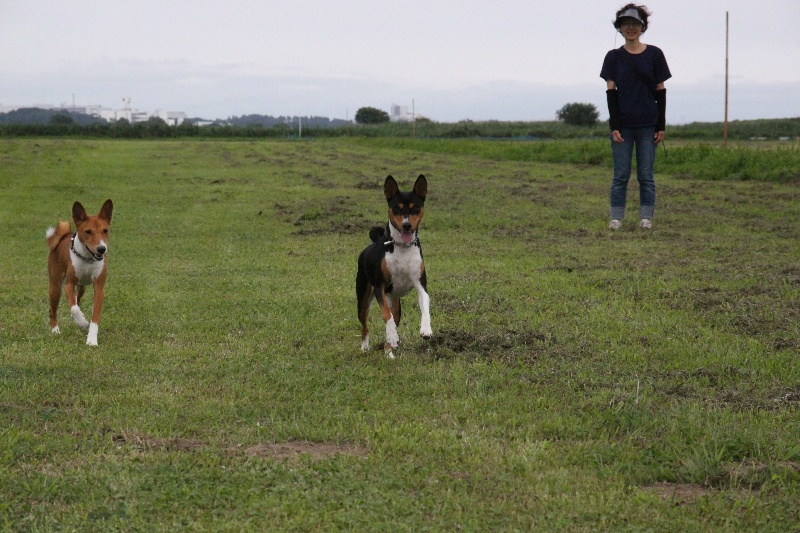 8月15日 バセンジ軍団に囲まれるモモさん。 |