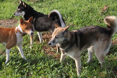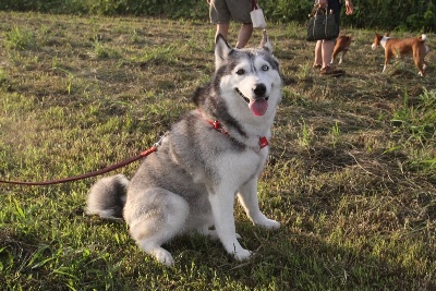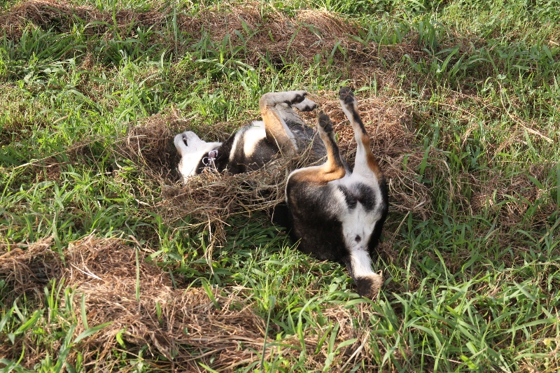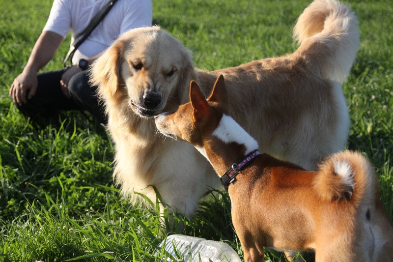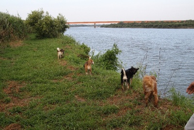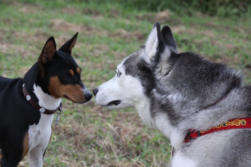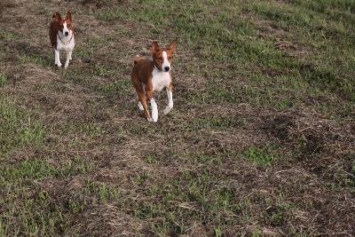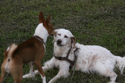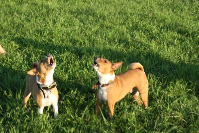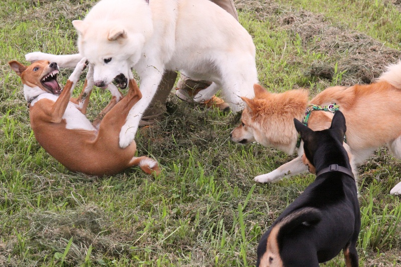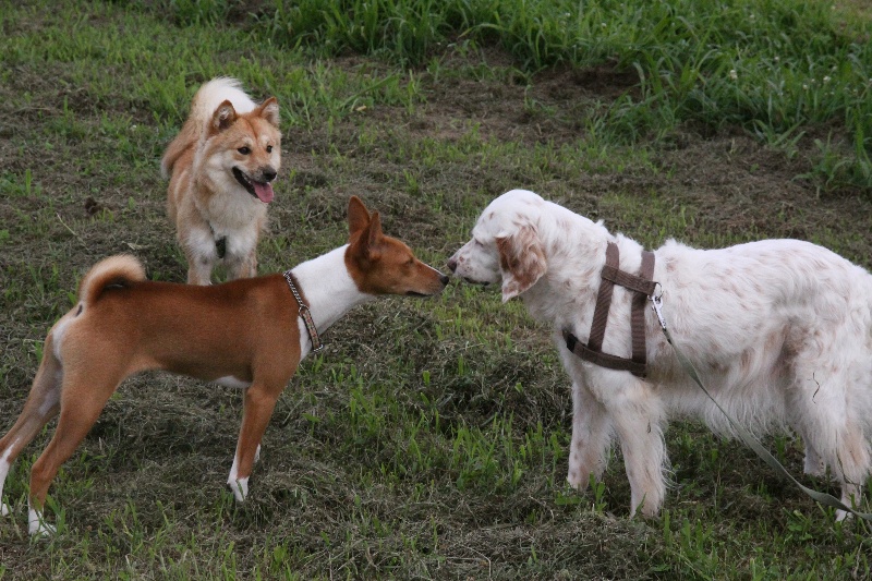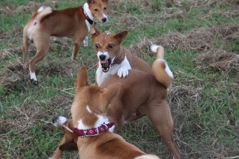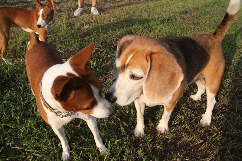 8月15日 バセンジ軍団に囲まれるモモさん。 |