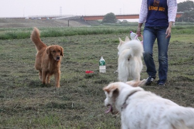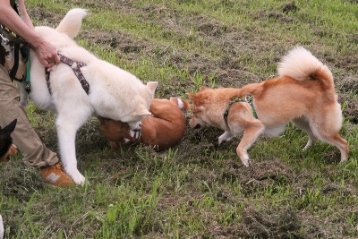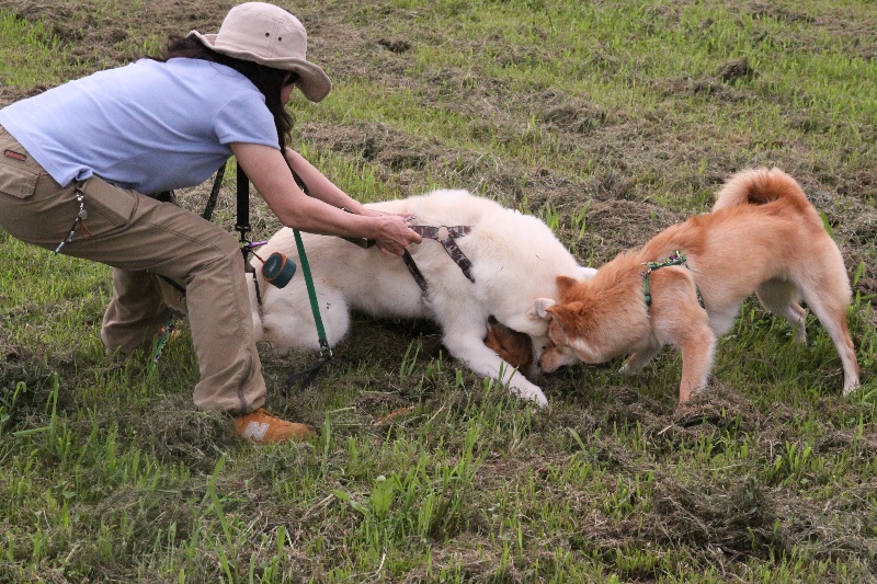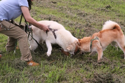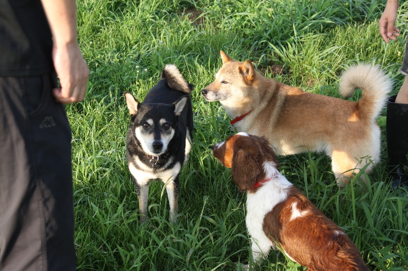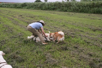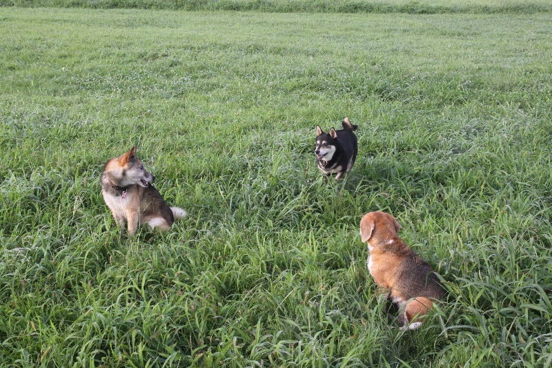 8月15日 ミワちゃんをマークするリリーさんとカラジ君。 |