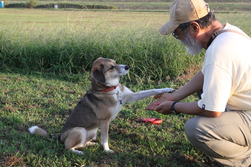 お手の訓練中。 |