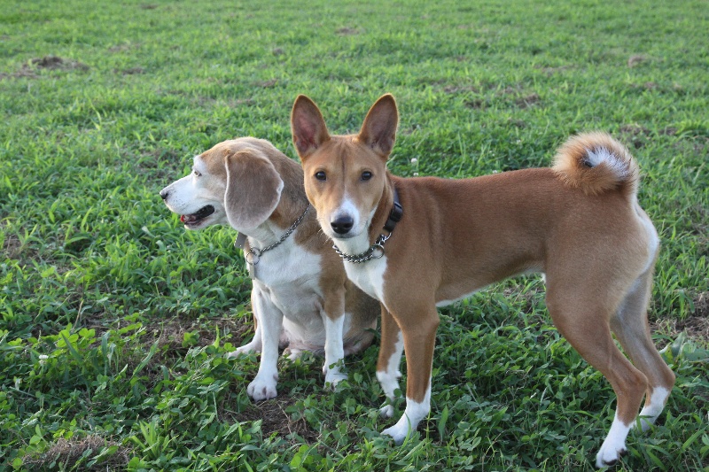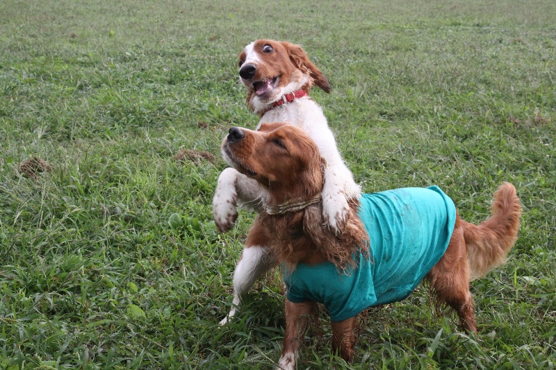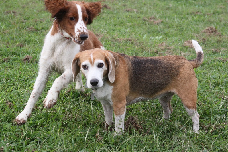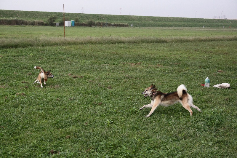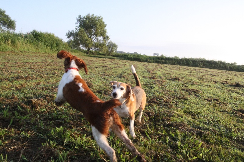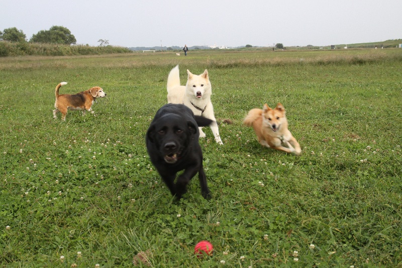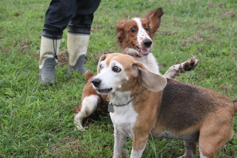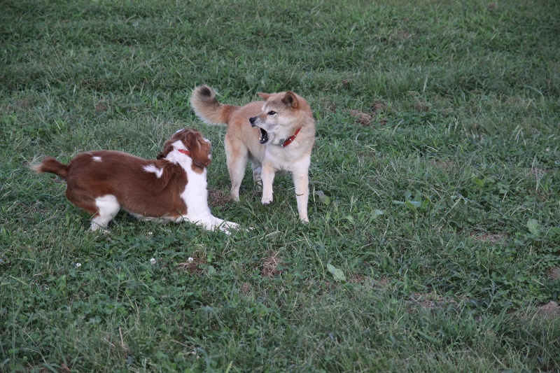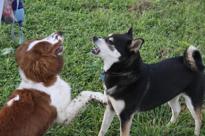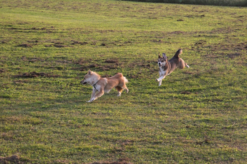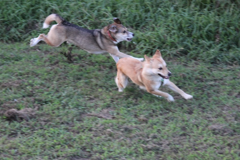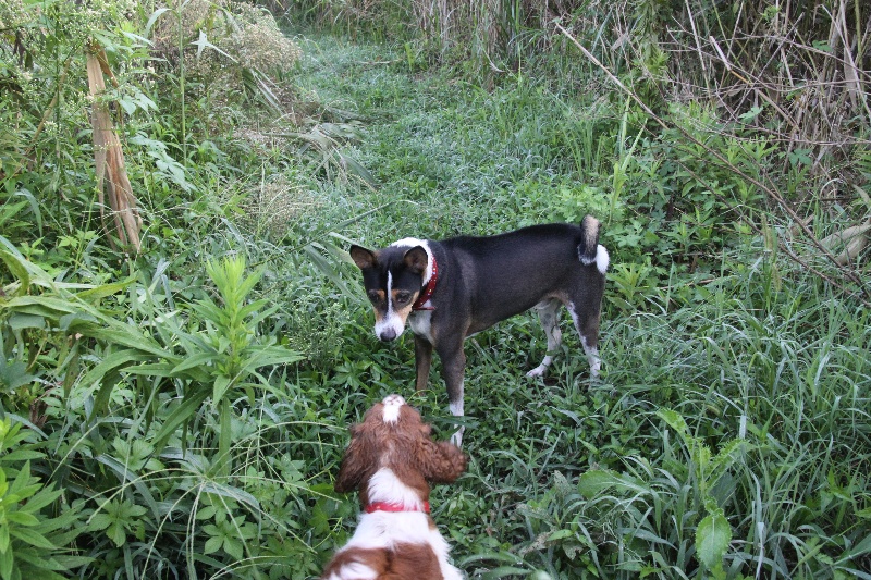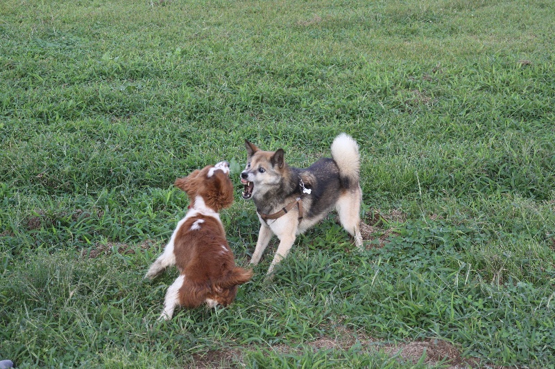 追いかけっこをするマロンちゃんとカイ君。 |