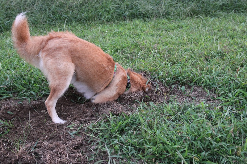 ネズミ掘りで泥まみれの図。 |