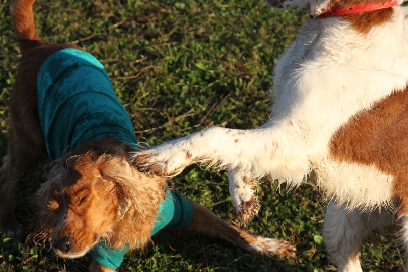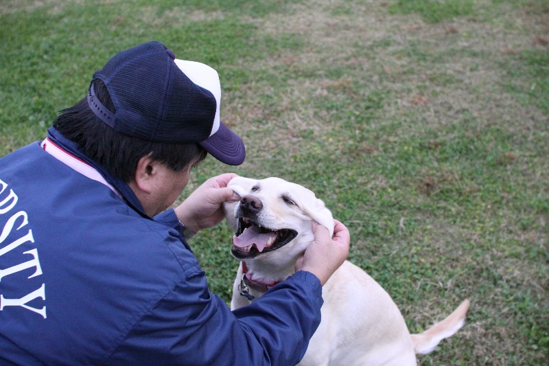 ソラちゃんのしわ?を伸ばすソラパパさん。 |