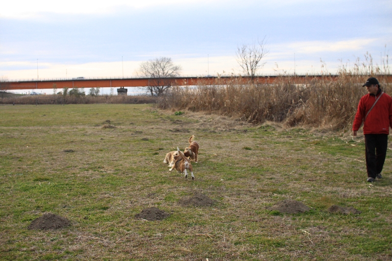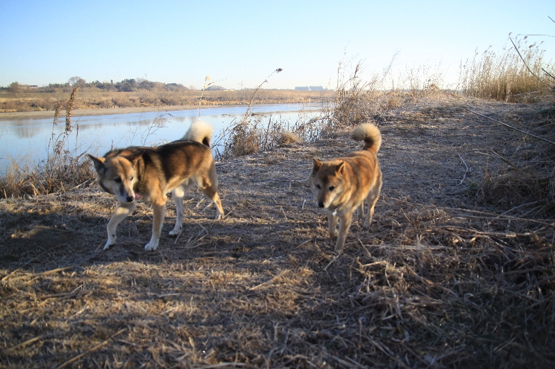 麦ねぇさんのお嬢ちゃんが川原デビュー。 |