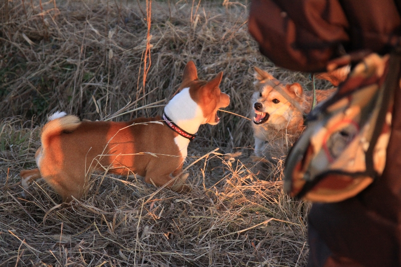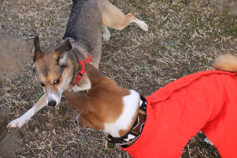 ハナちゃんとよつばちゃんにガウガウ発生。 |