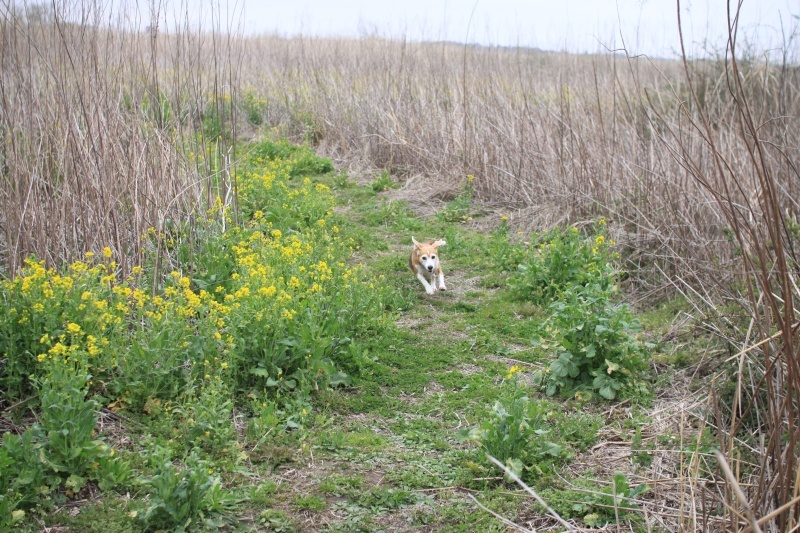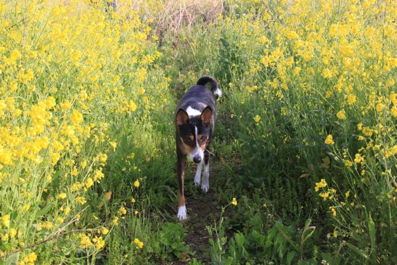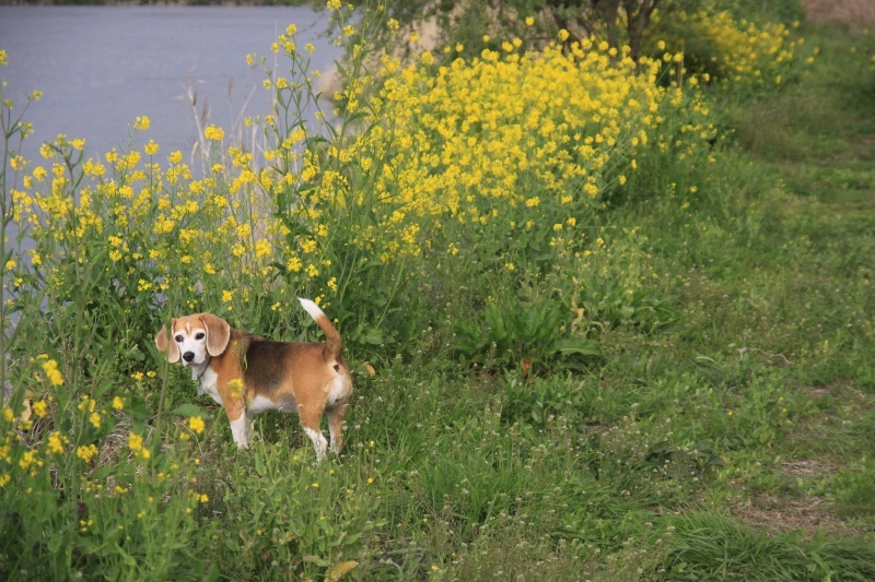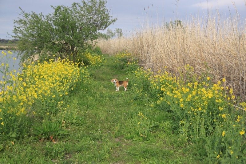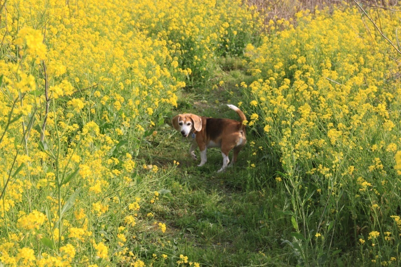 菜の花ロードを進むパル兄貴。 |