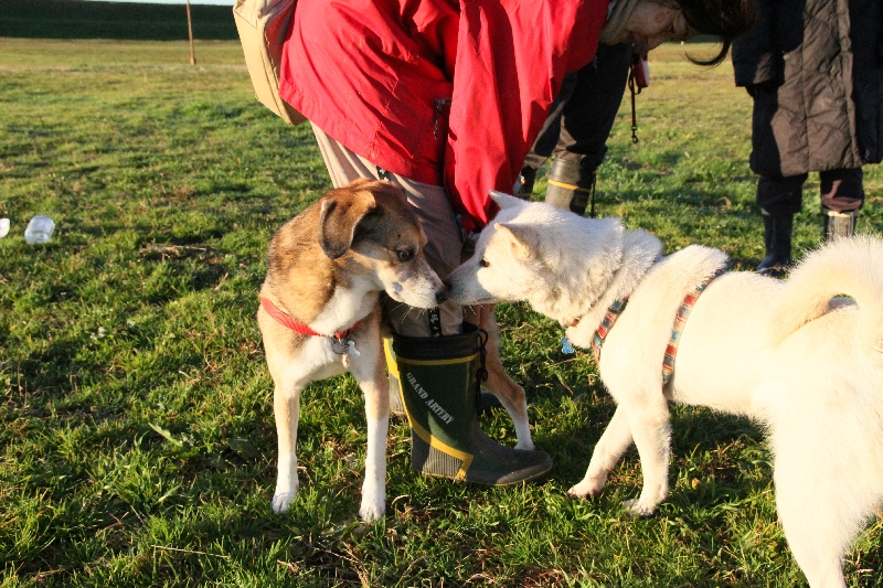 マルさんの匂いをチェックするダッシュ君に...。 |