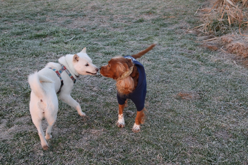 珍しくまるさんにちょっかいを出すカイ君。 |