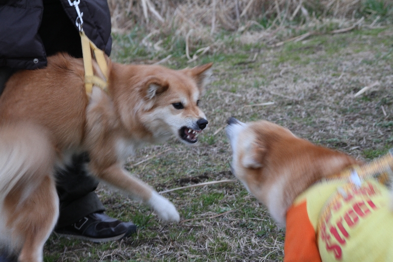 突然きゅうこりんと大吉君にガウガウ発生! |