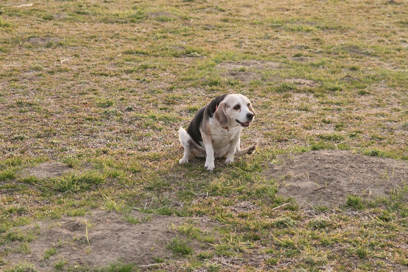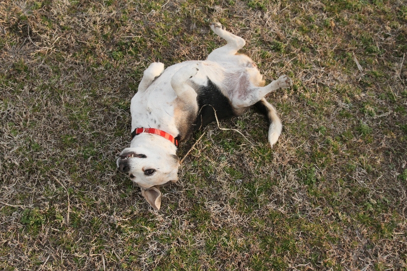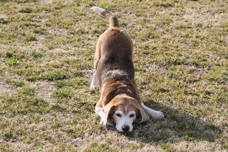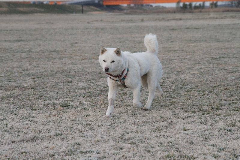 お得意のお尻歩きをする麦ちゃん。 |