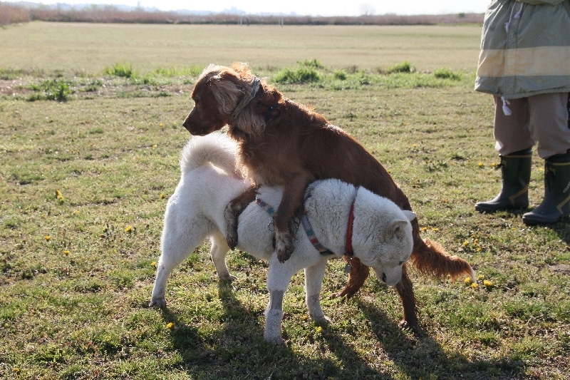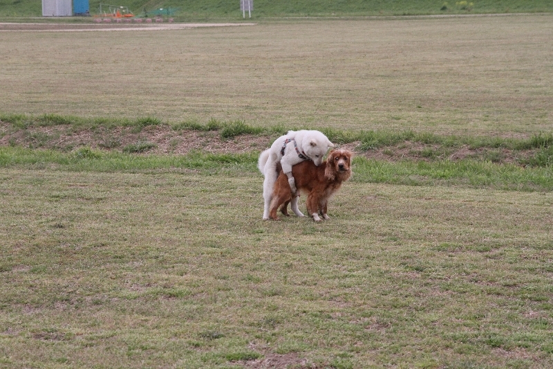 きゅーこりんに乗っかられるへなちょこボクちゃん。 |