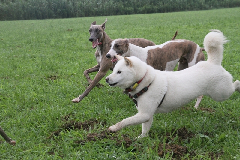久々にダッシュ君が川原に復帰!元気そう。 |