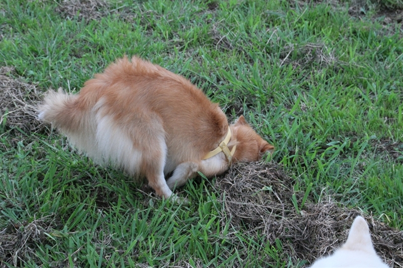 モグラ狩に精を出すよつばさん。「いますか?」 |