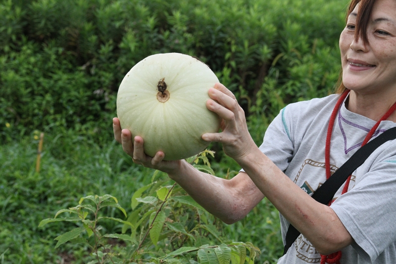 秘密農場で巨大ズッキーニを収穫。 |
