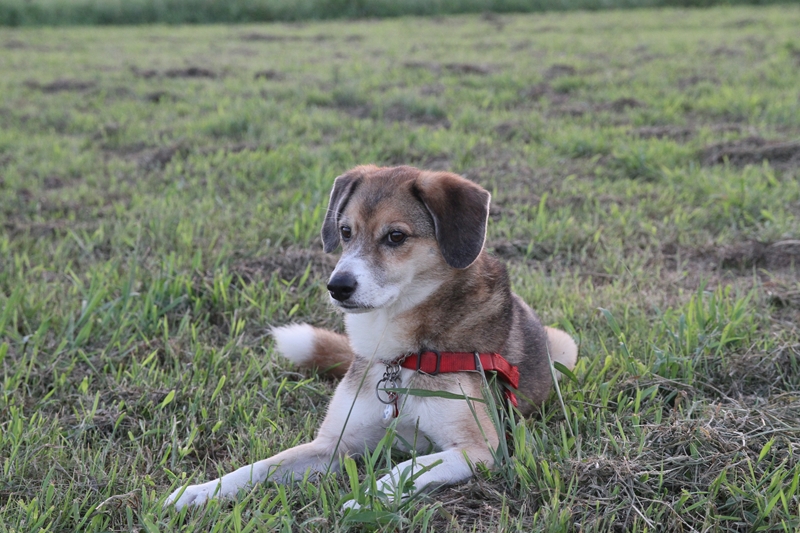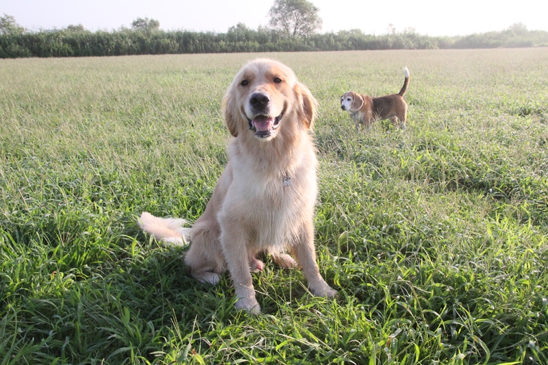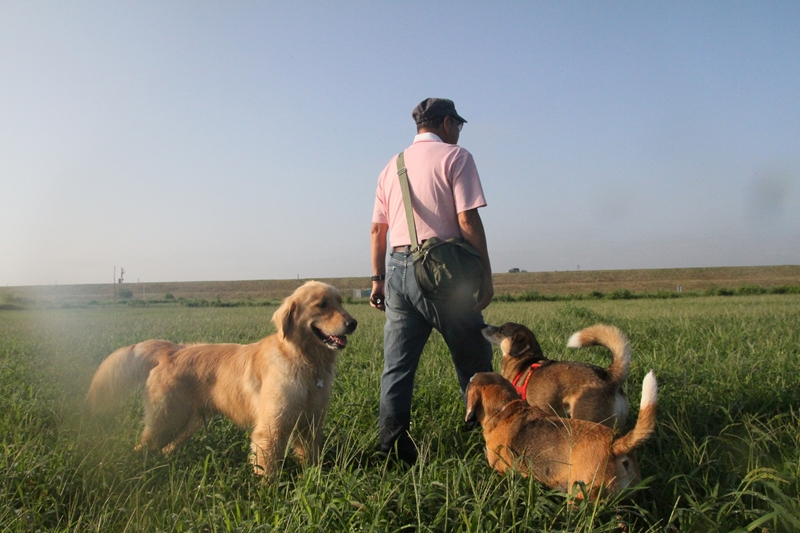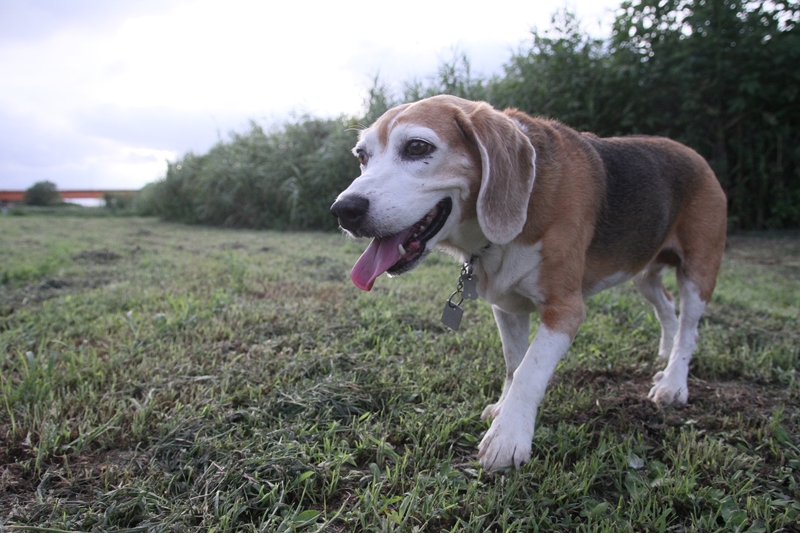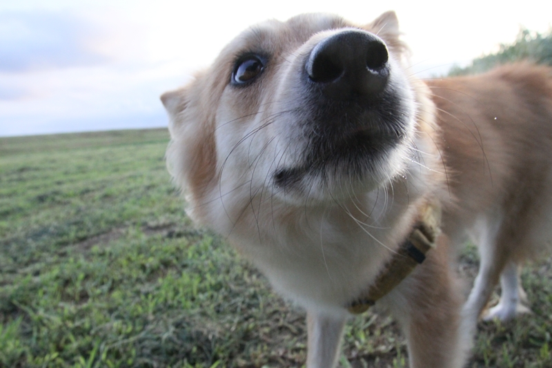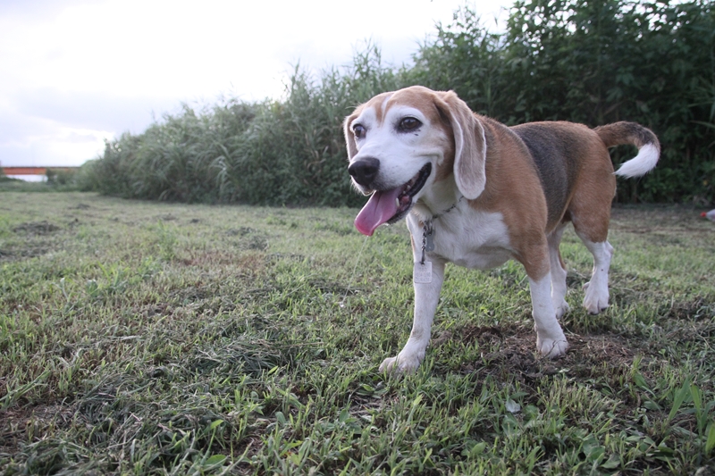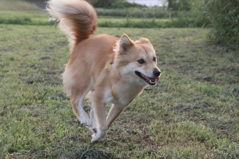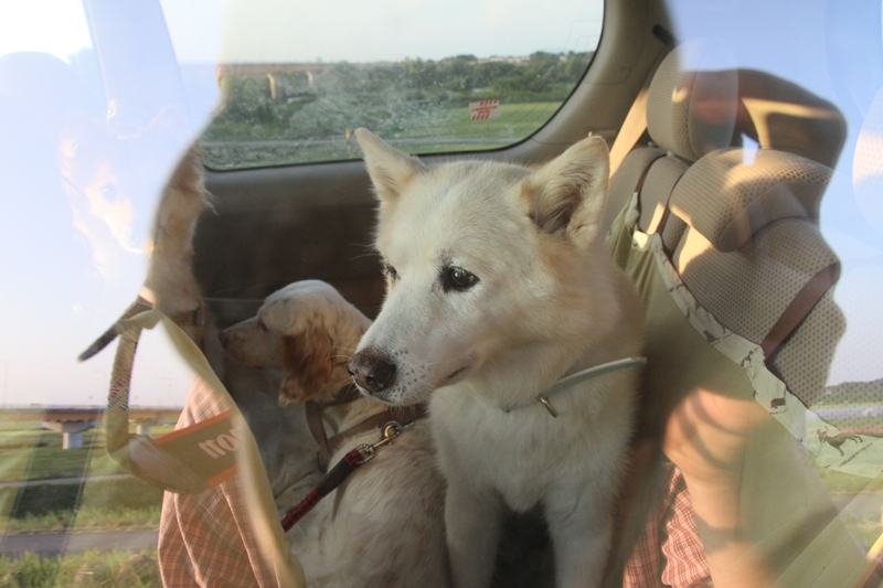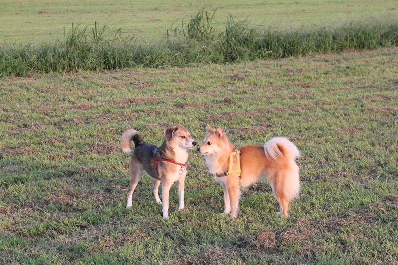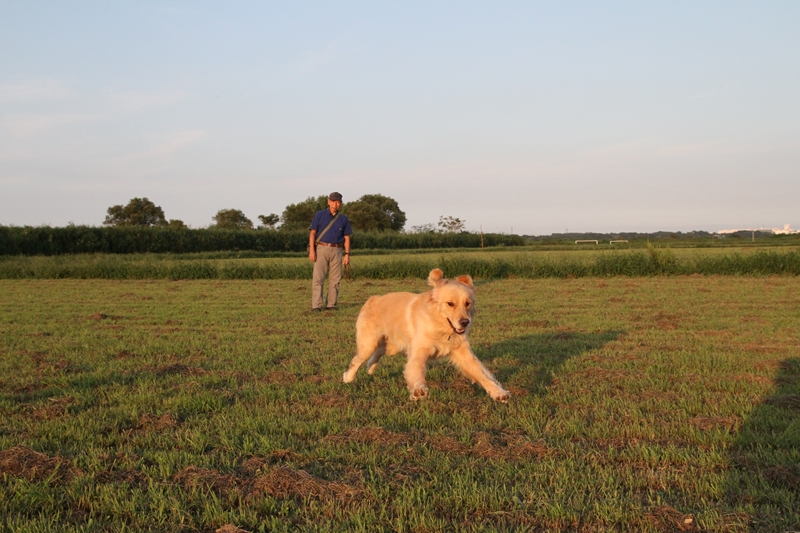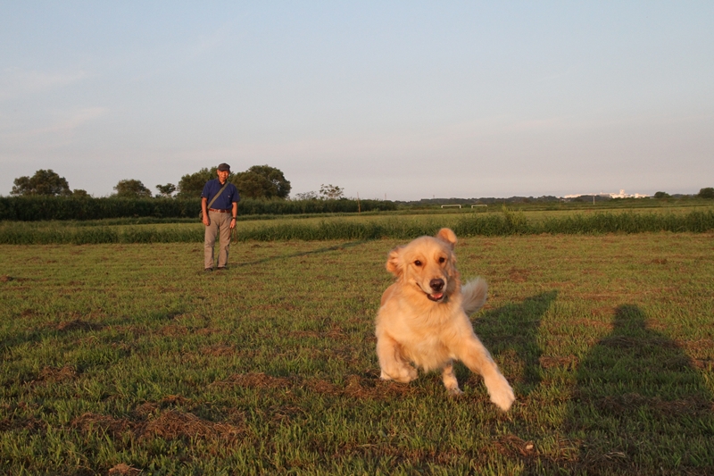 夕日に照らされるダッシュ君。 |