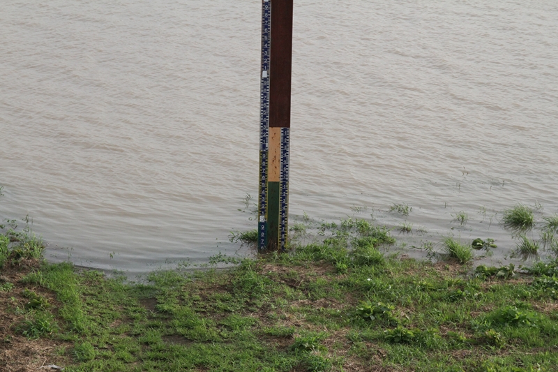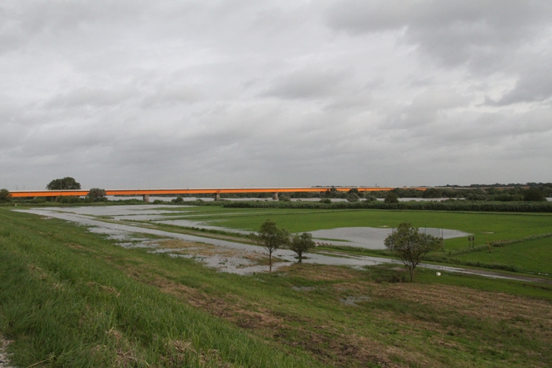 上流の工事用道路も水没。 |