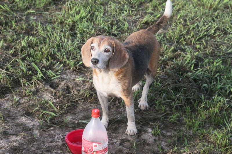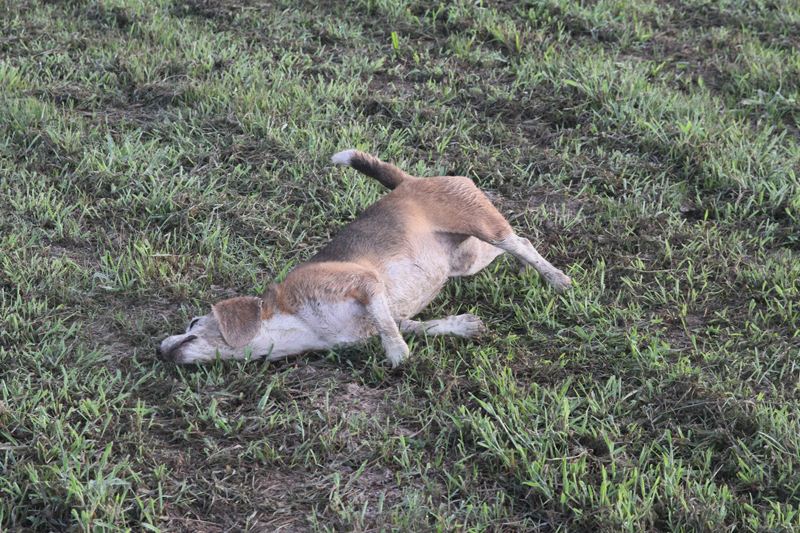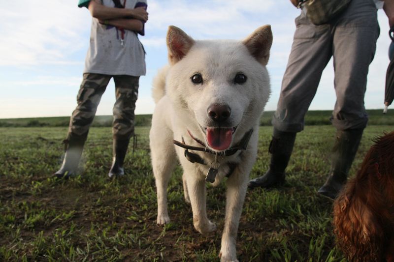 ダッシュ君も朝露でベチョベチョ。 |