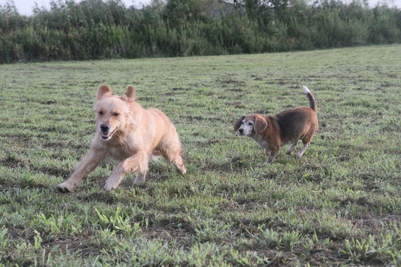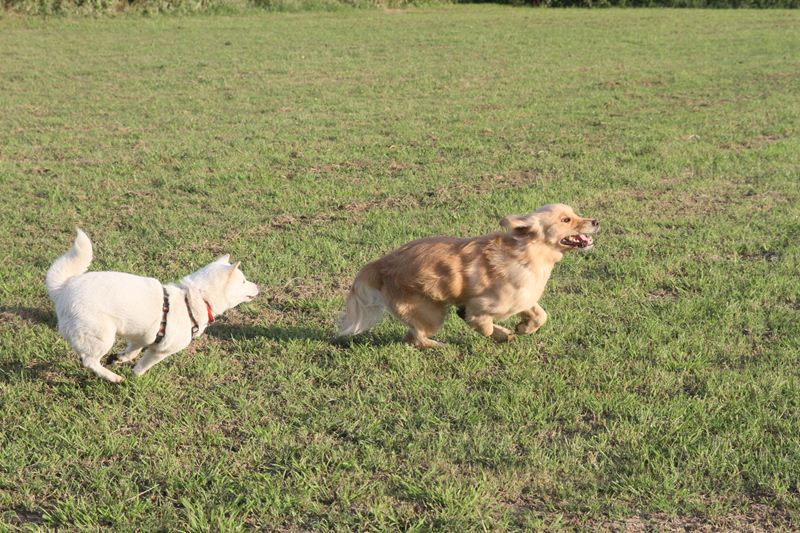追いかけっこをする二人。 |
