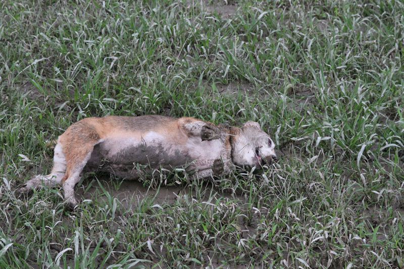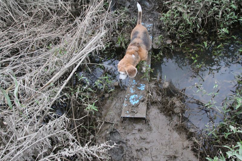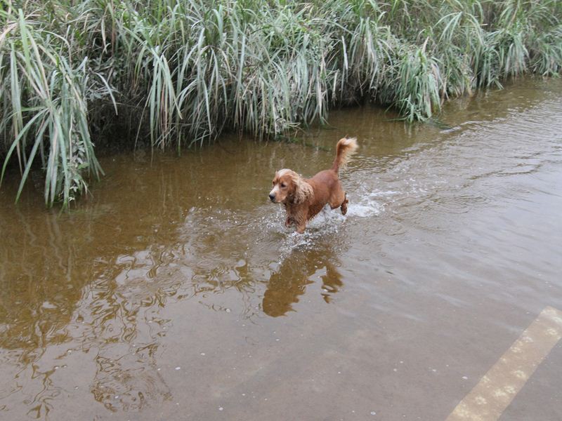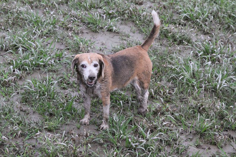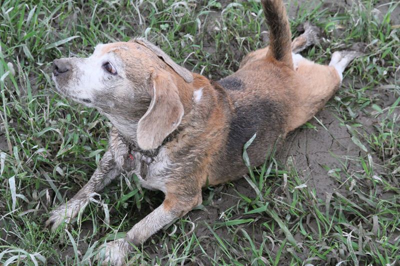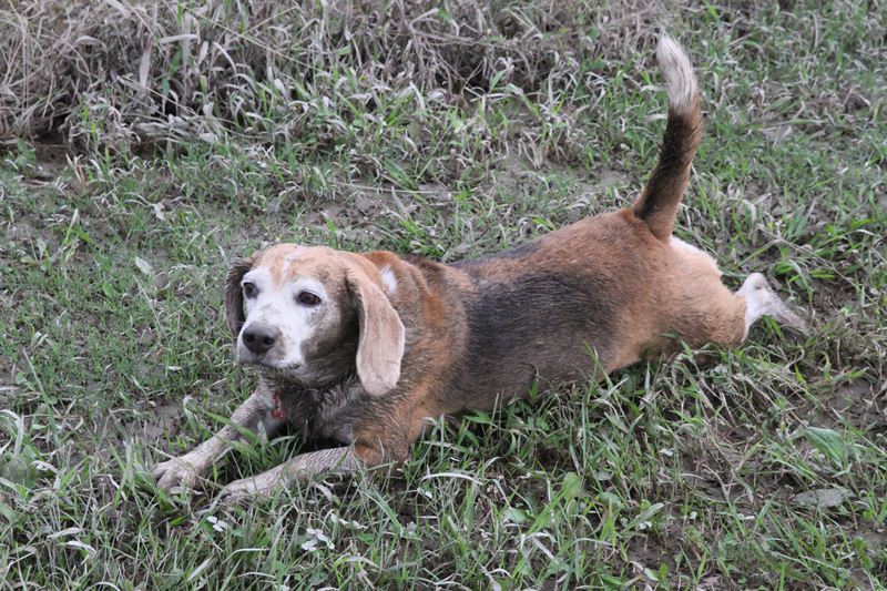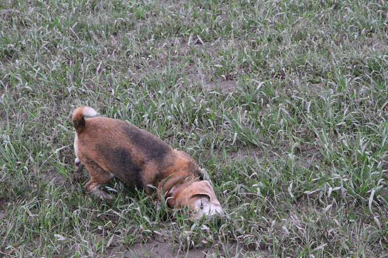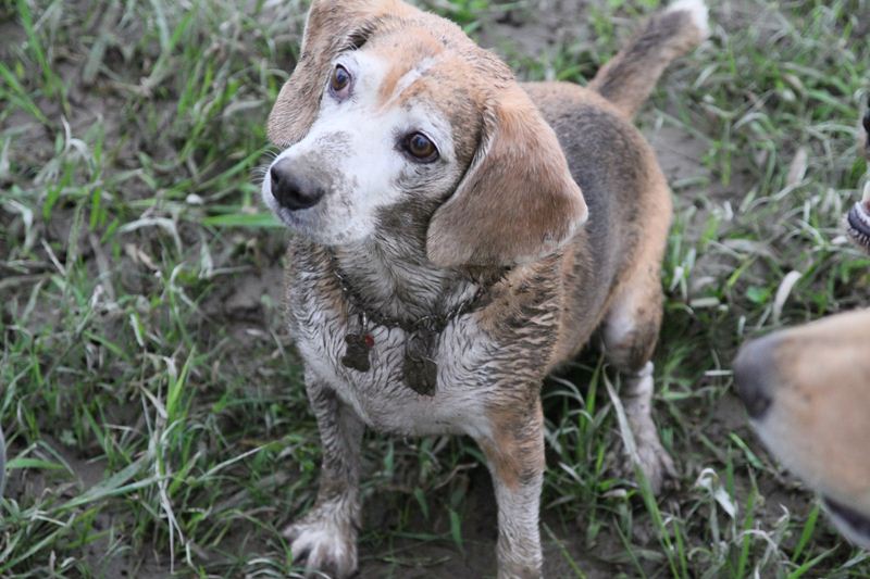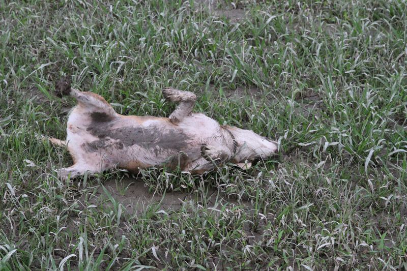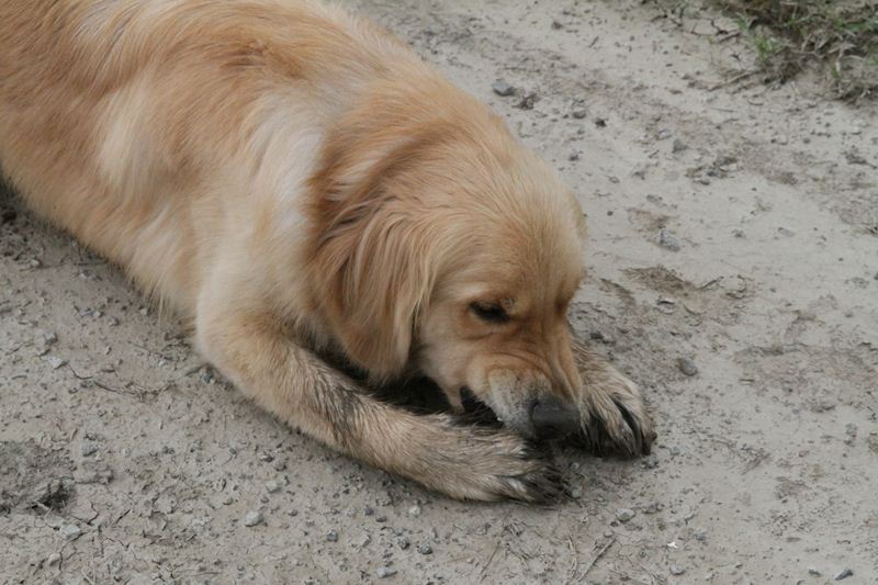 ダッシュ君は指の間の泥が気になってます。 |