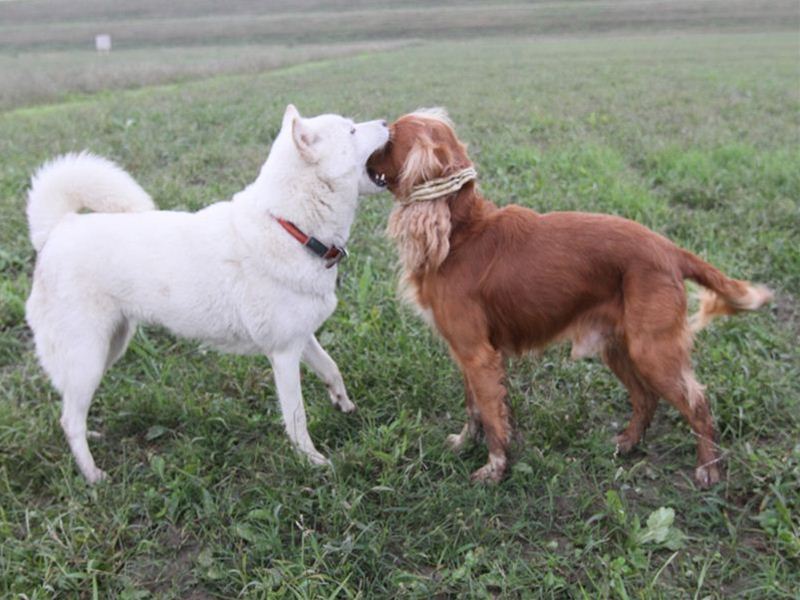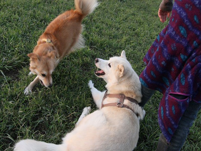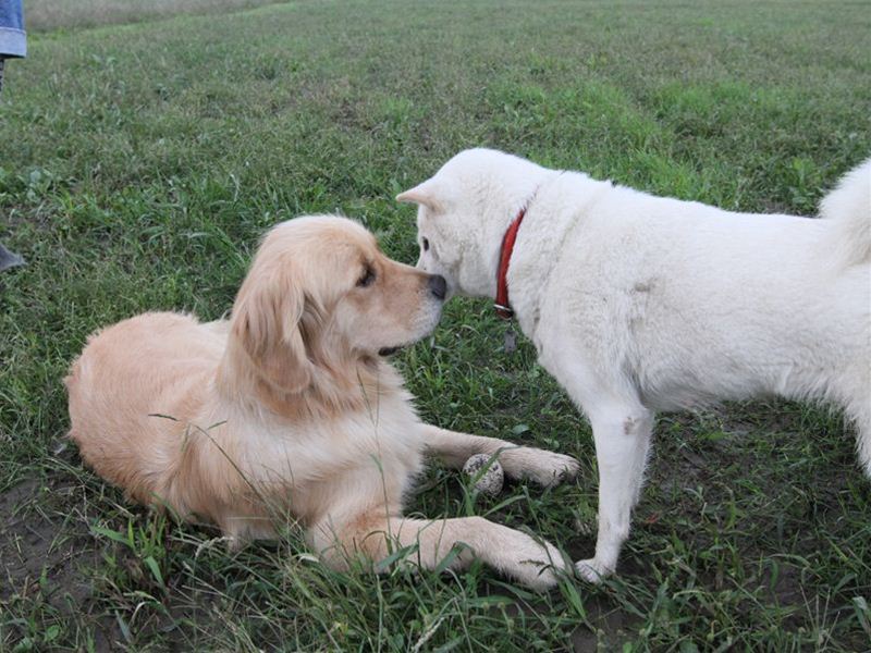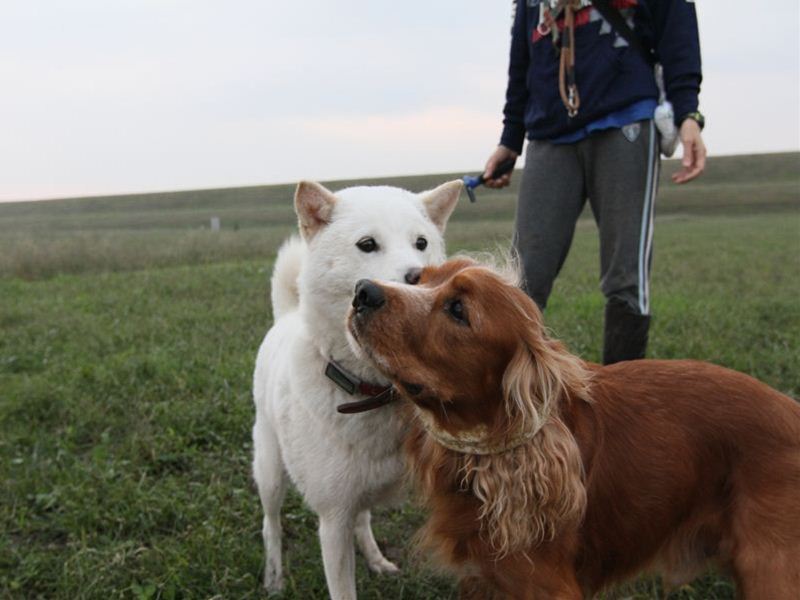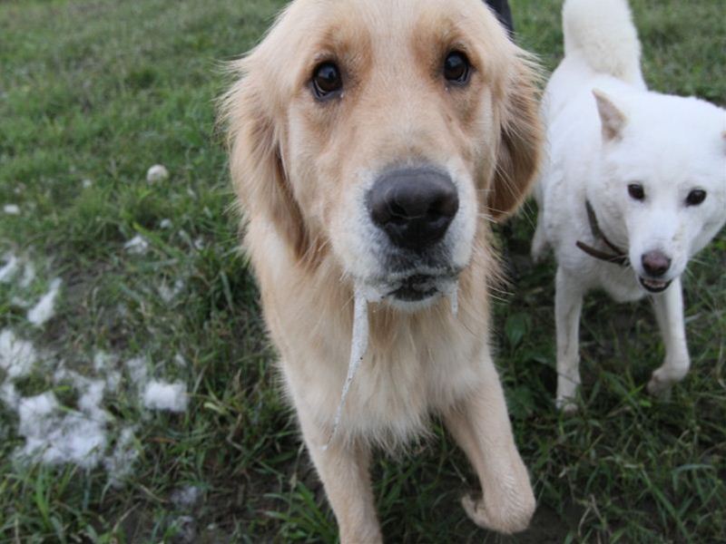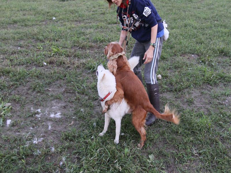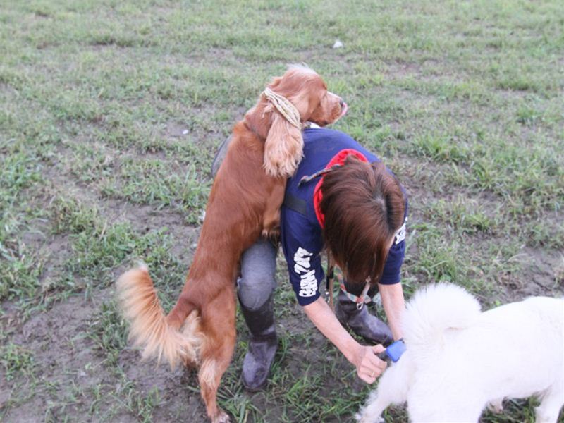 ボクちゃんの背中にダッシュ君のよだれがっ! |