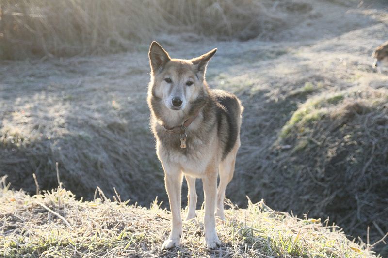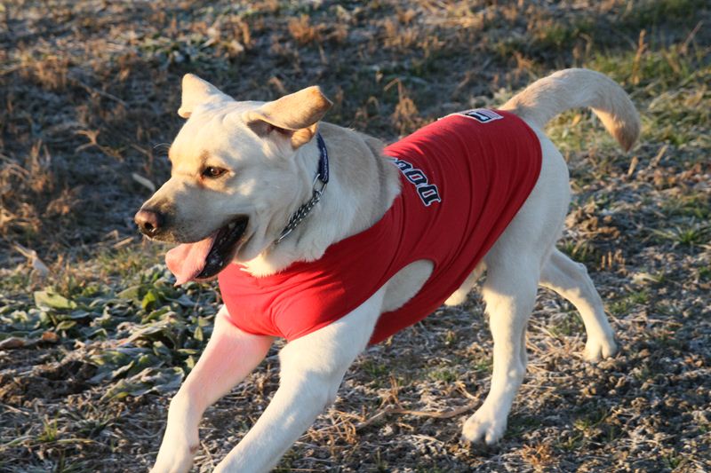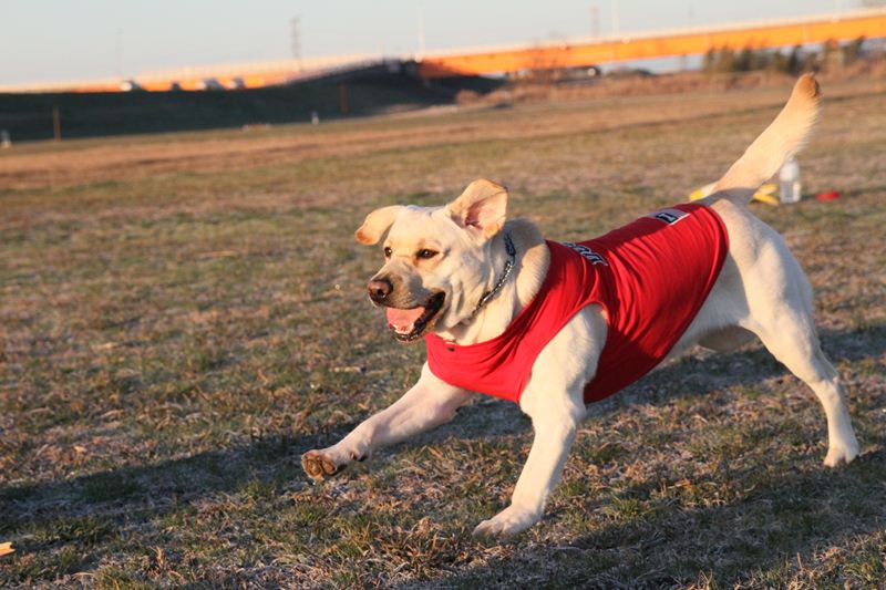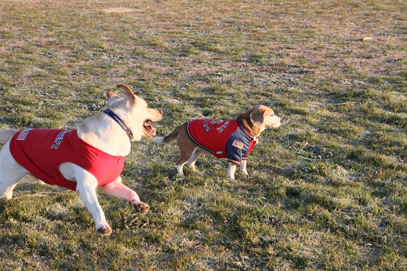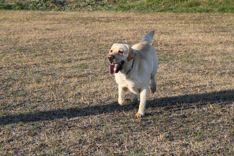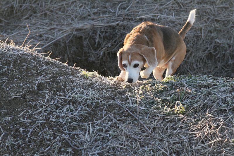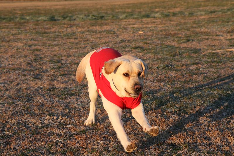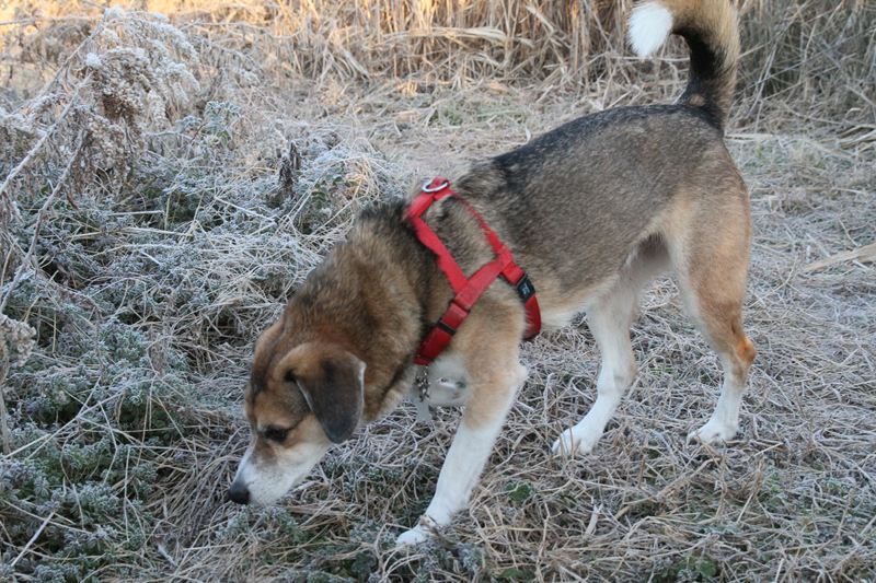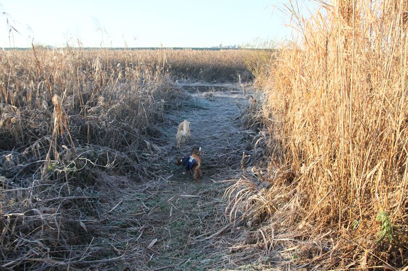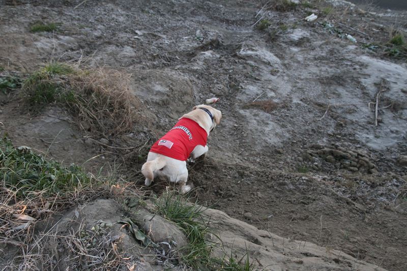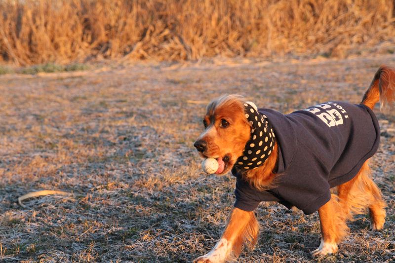 凍てついた川原をぎこちなく走るきゃらの図。 |