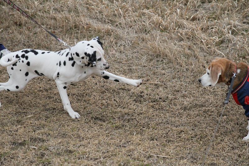 ダルメシアン(7ヶ月)と遭遇!「あそぼうっ!」。 |