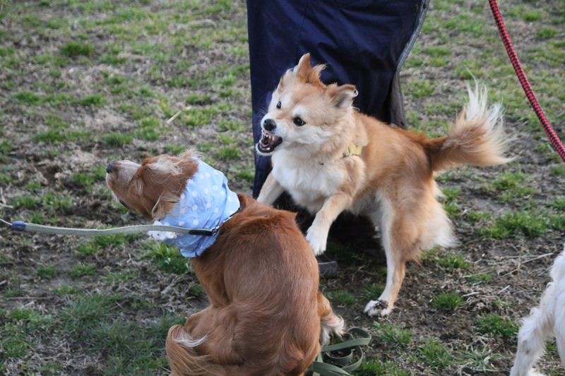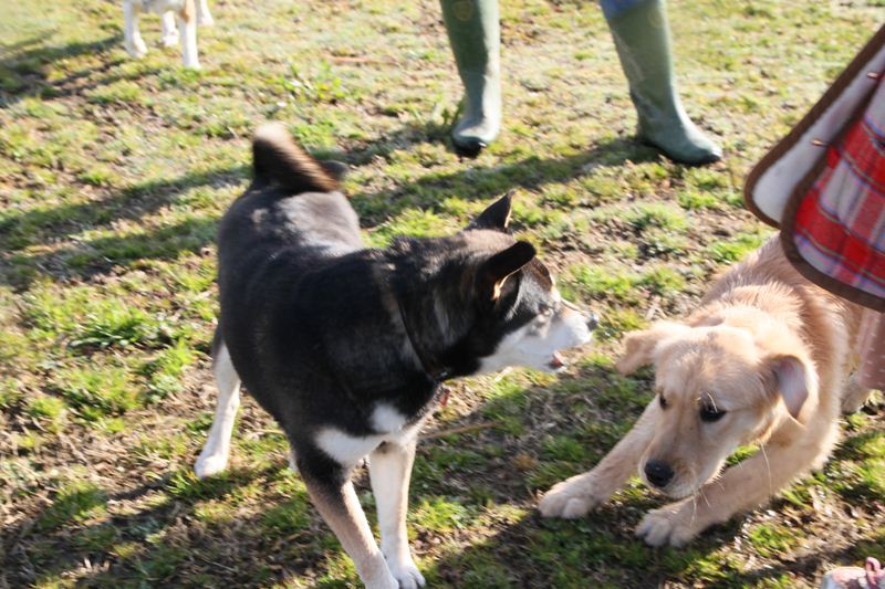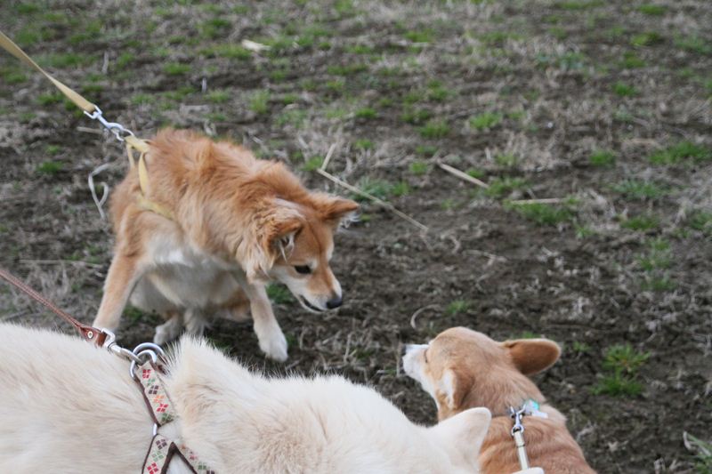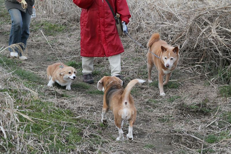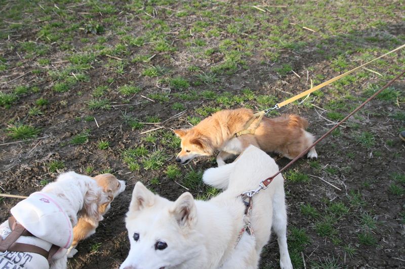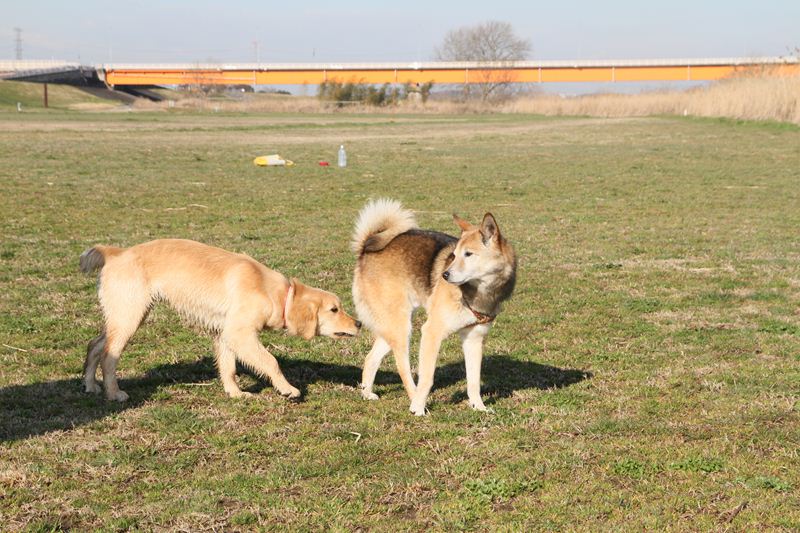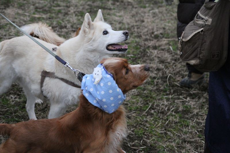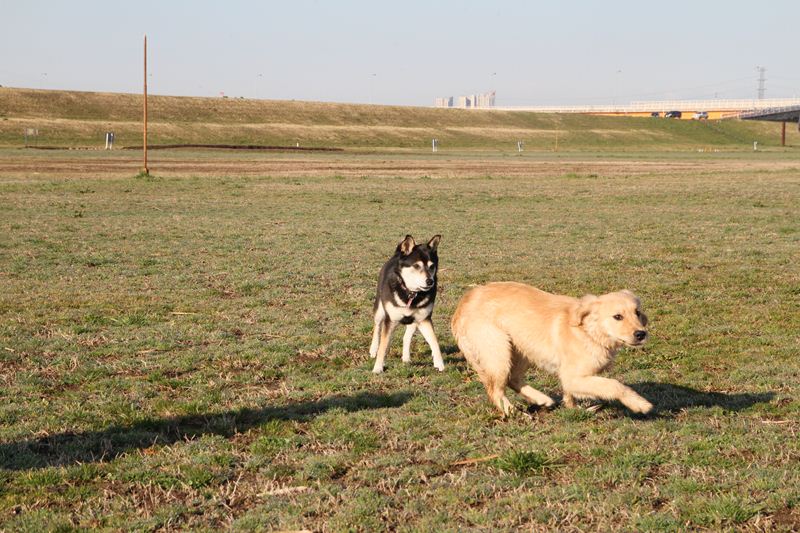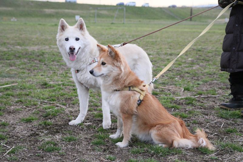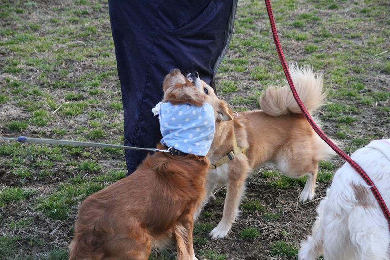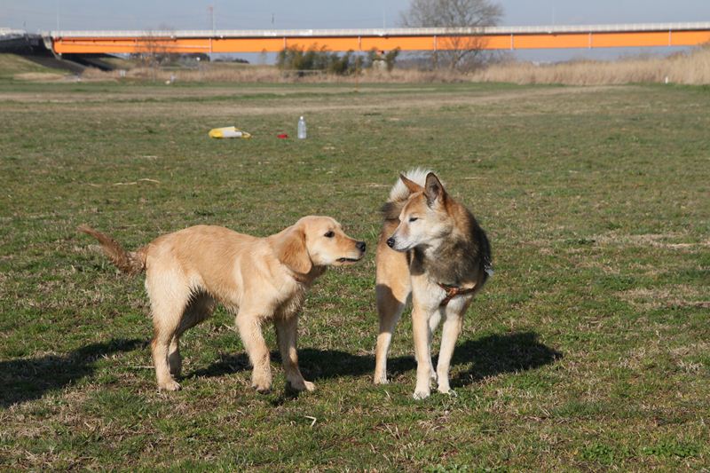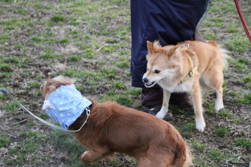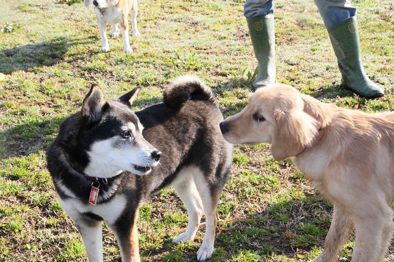夕方奥の細道でゴンちゃん(右)とジャック君(左)と遭遇。 |