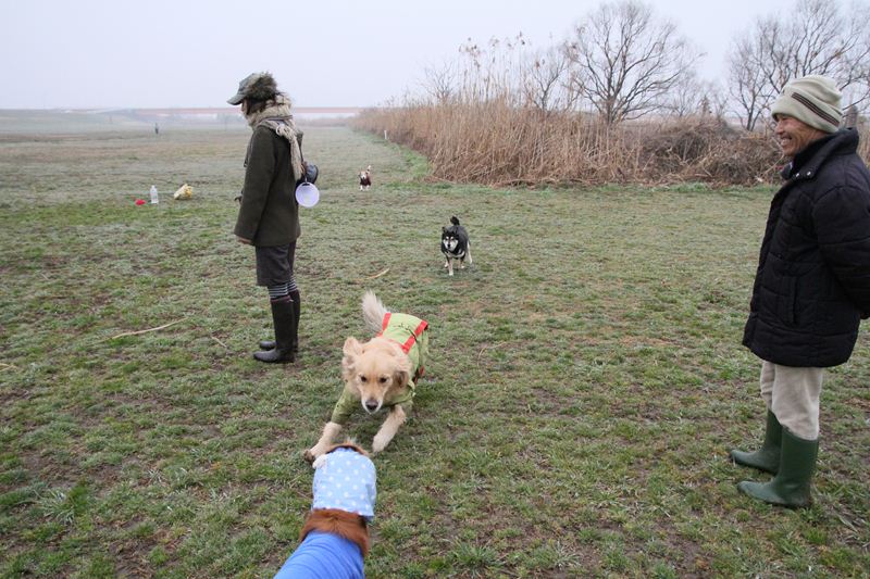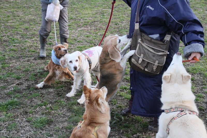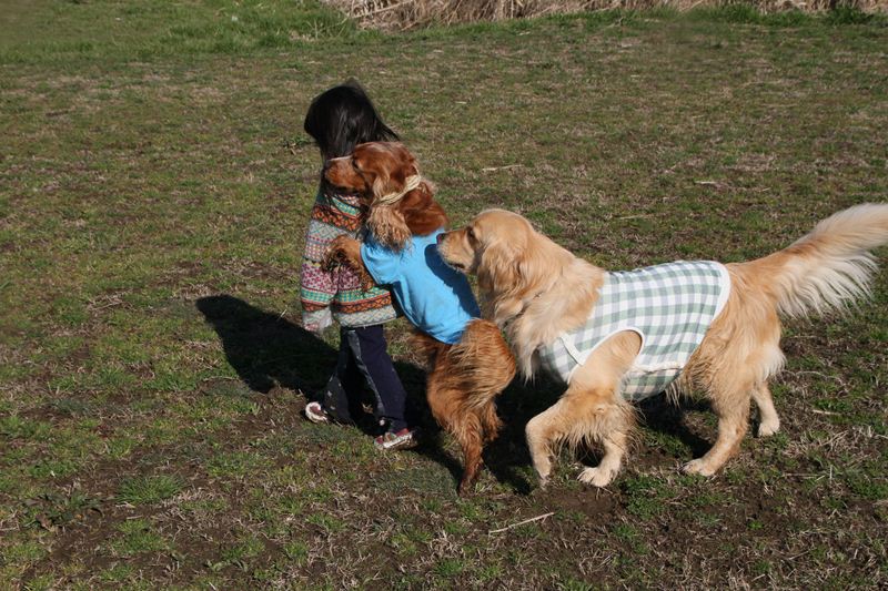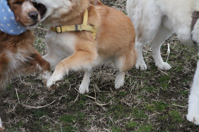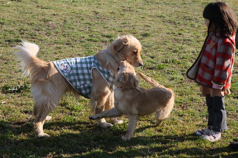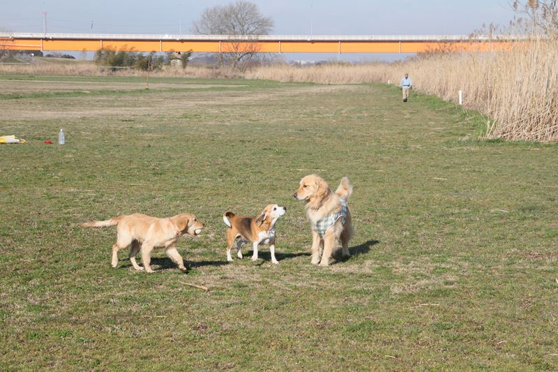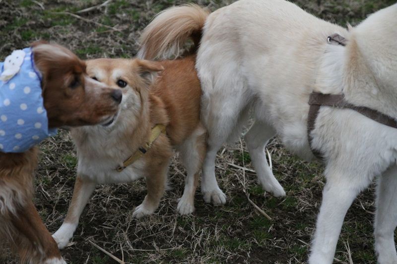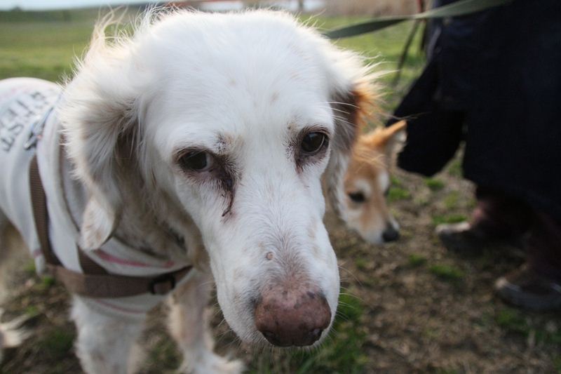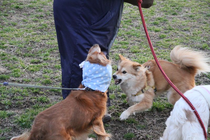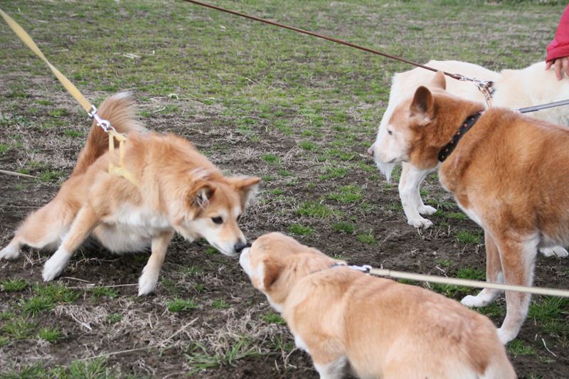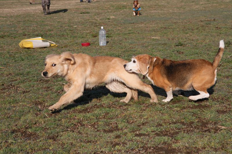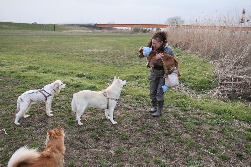 夕方奥の細道でゴンちゃん(右)とジャック君(左)と遭遇。 |