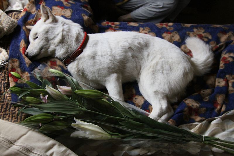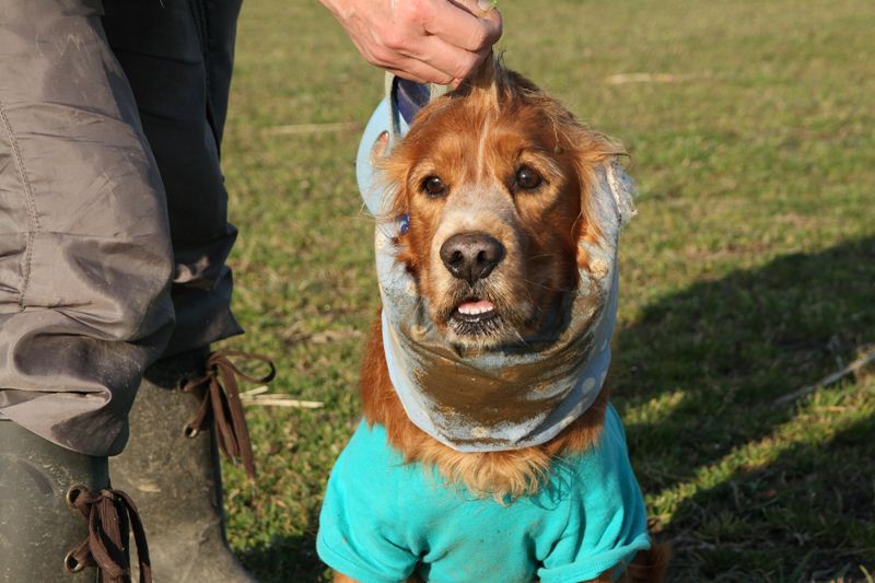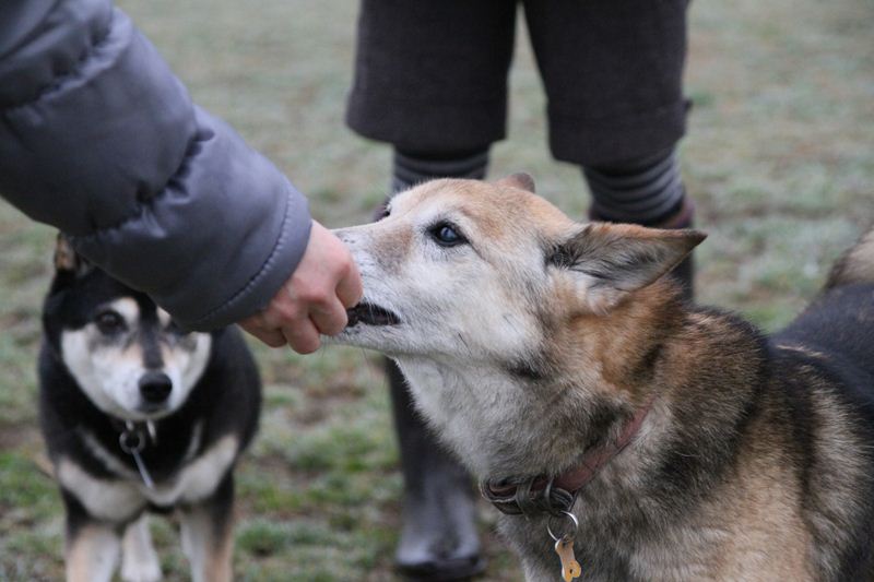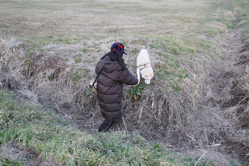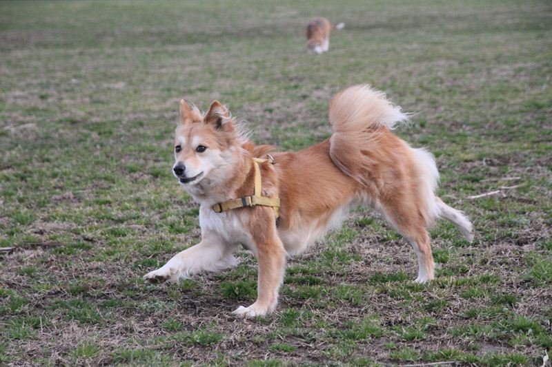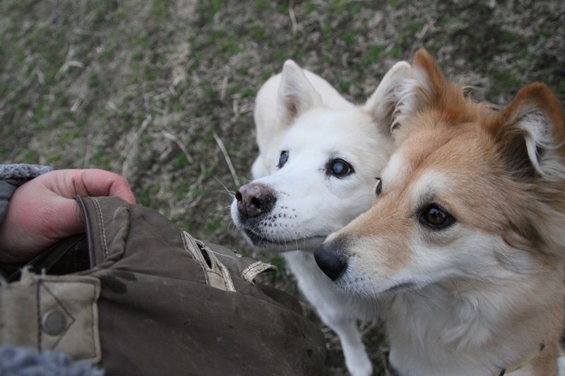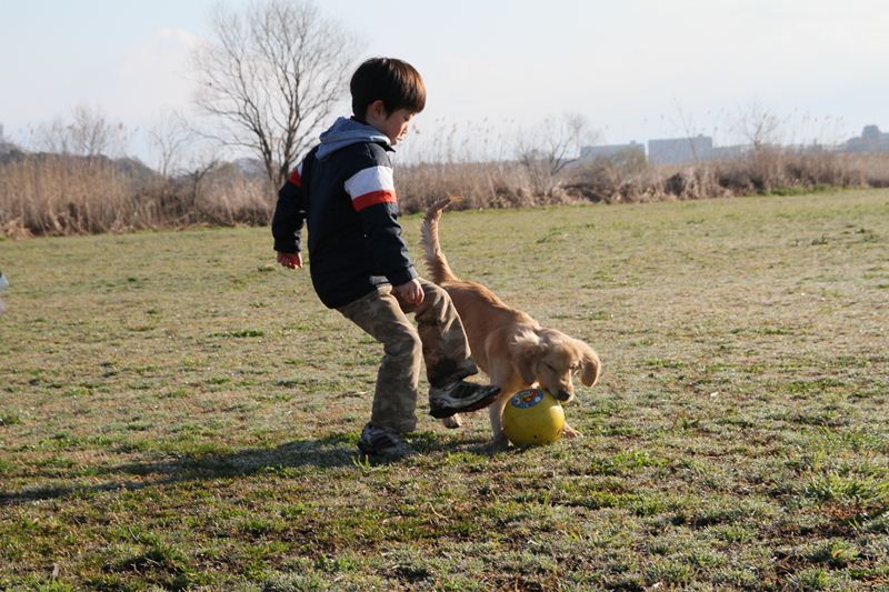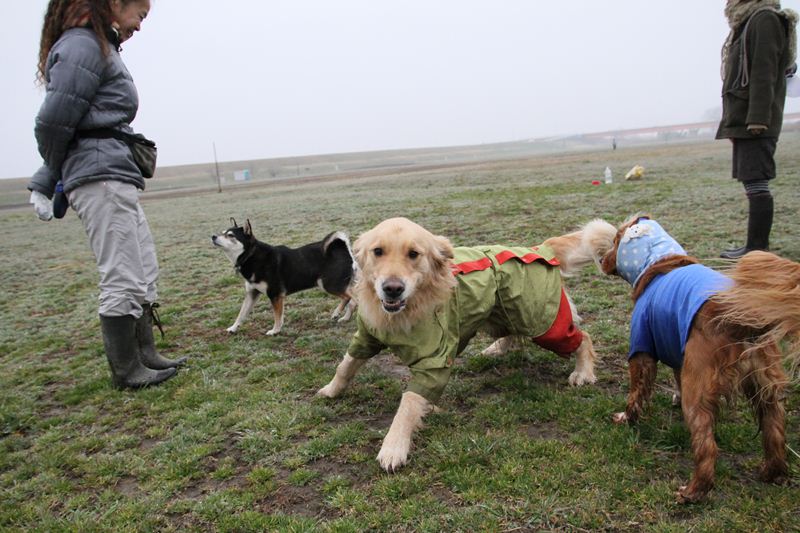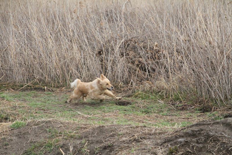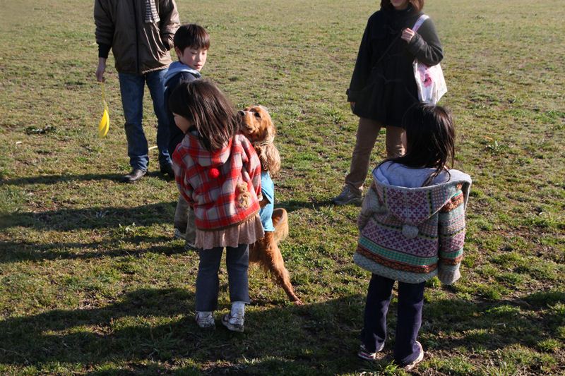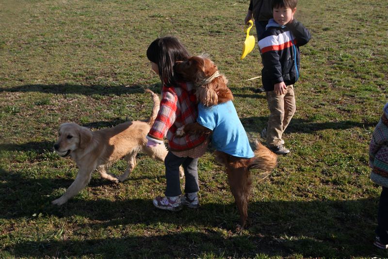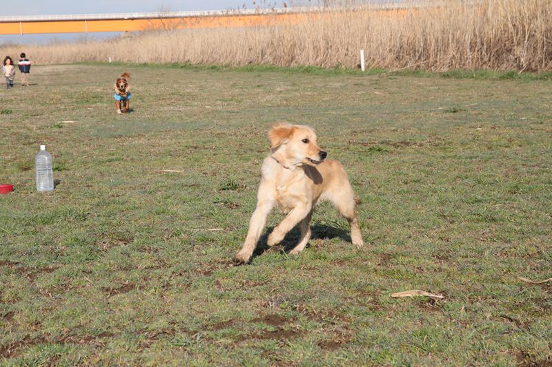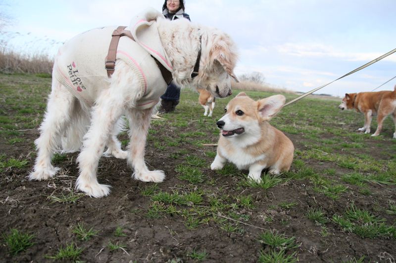 夕方奥の細道でゴンちゃん(右)とジャック君(左)と遭遇。 |