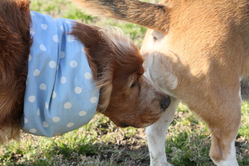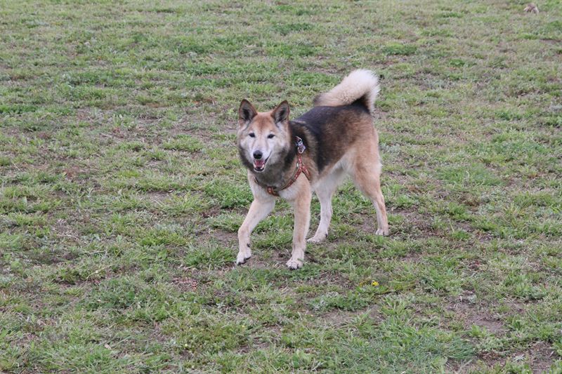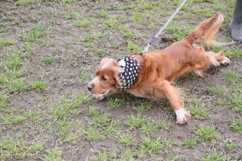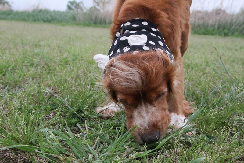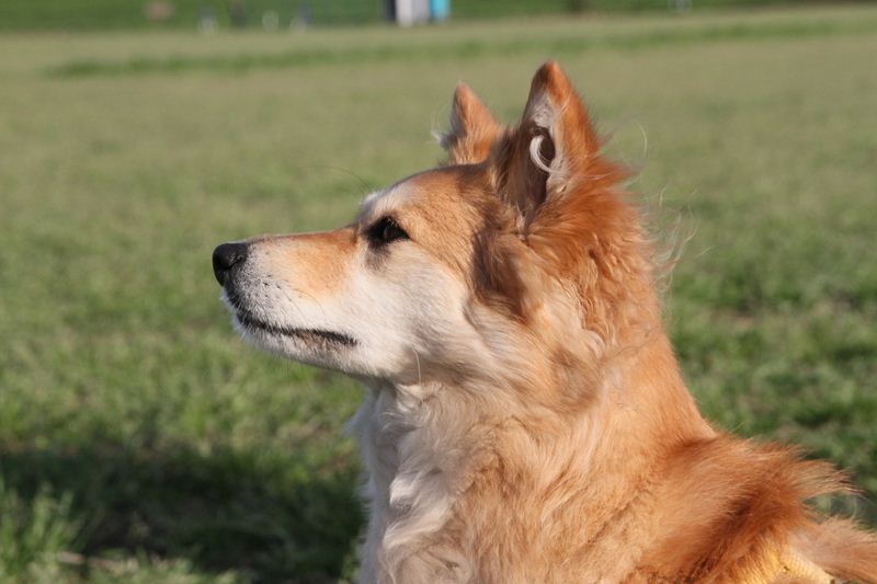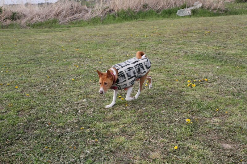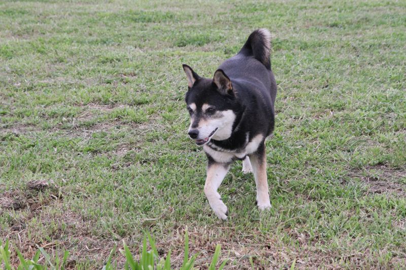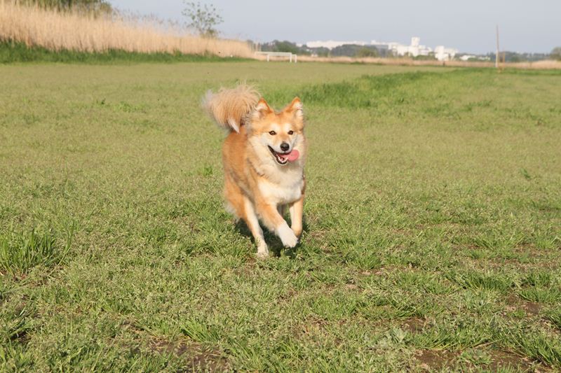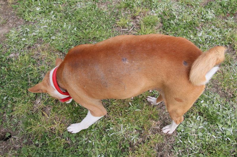 夕方のボクちゃんの尻尾はバカ殿のちょんまげ風。この原因は○玉のせいとのこと。 |