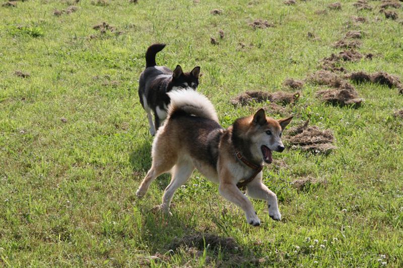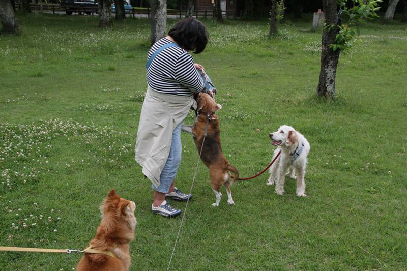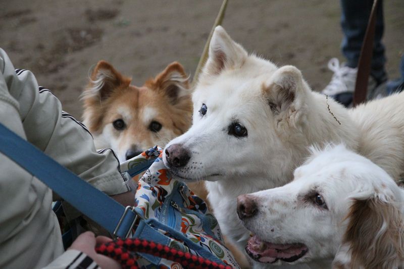 今日はあけぼの山をお散歩。にらみ合う皆さん。 |