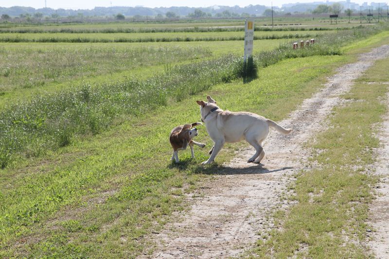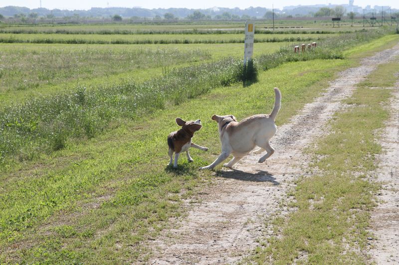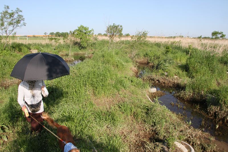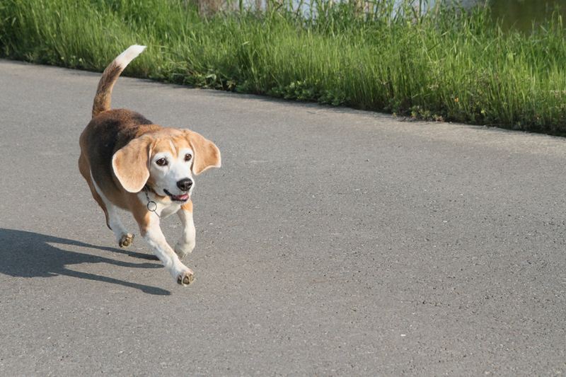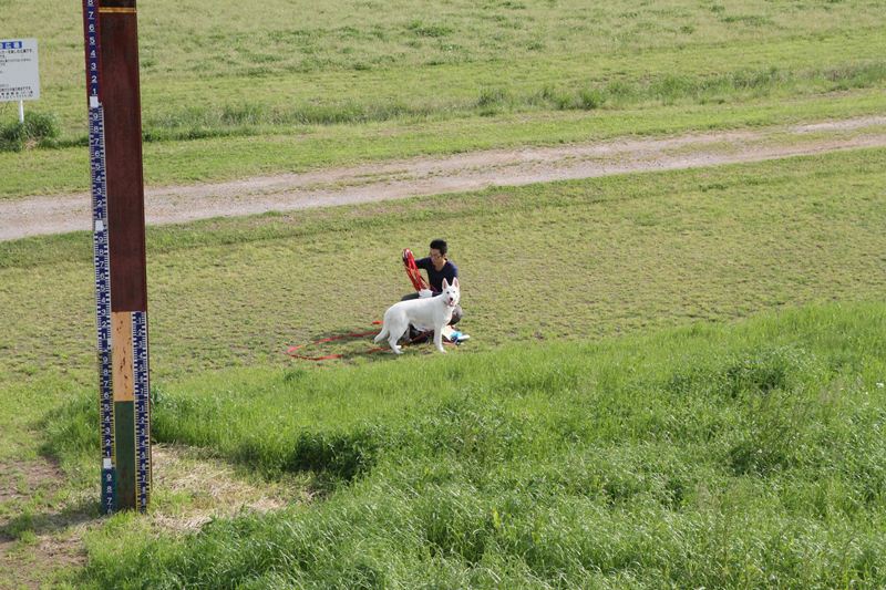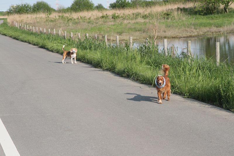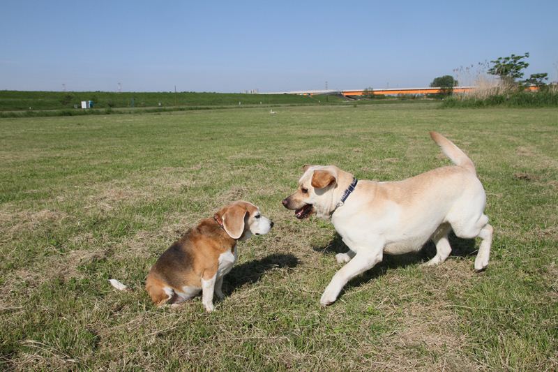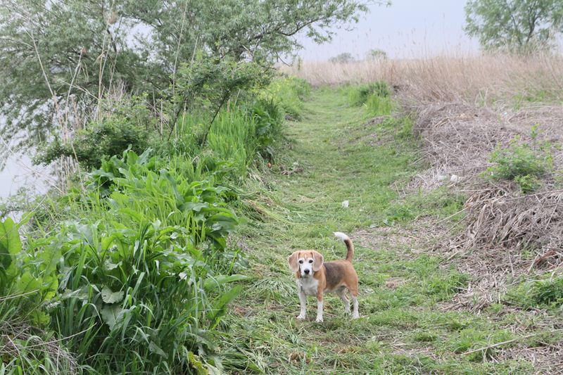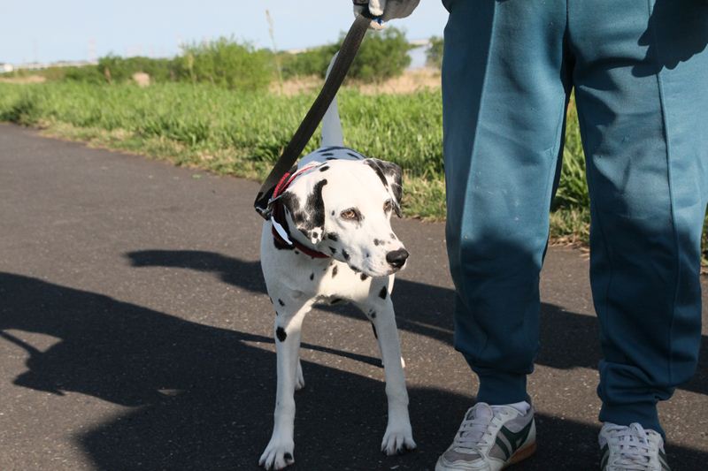 土手の上を散歩していたらダルメシアンに遭遇。 |