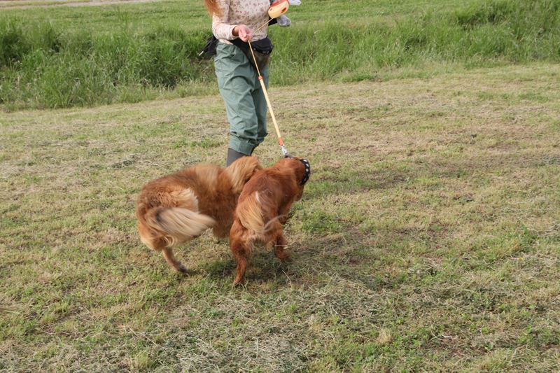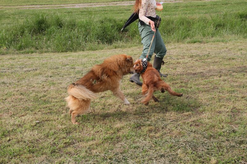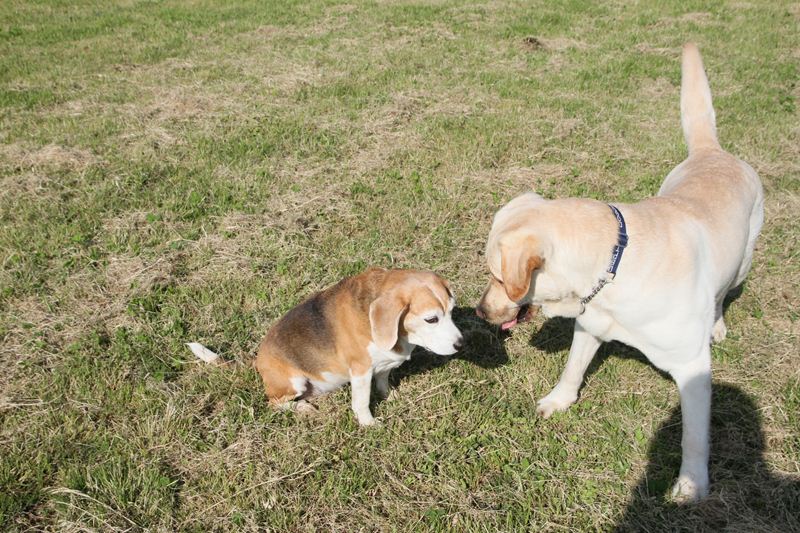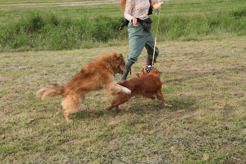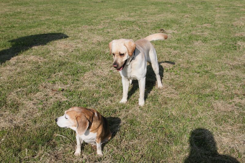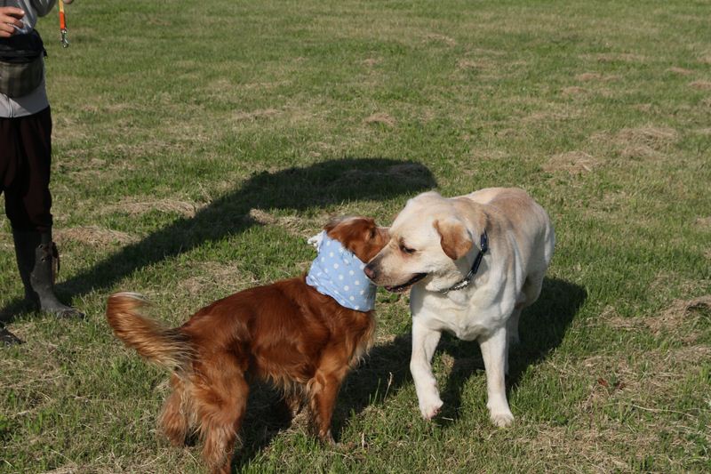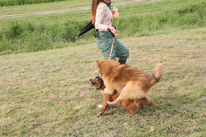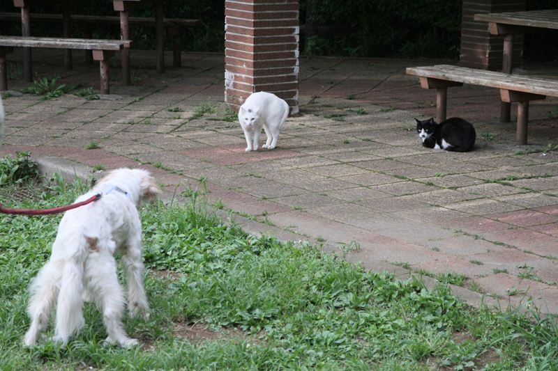 夕方はあけぼの山を散歩。にらみ合うお二人さん。 |